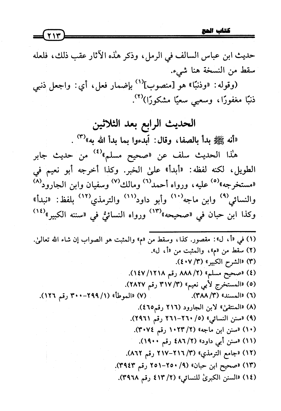 هَذَا الحَدِيث سلف عَن «صَحِيح مُسلم» من حَدِيث جَابر الطَّوِيل، لكنه لَفظه: «أبدأ» عَلَى الْخَبَر. وَكَذَا أخرجه أَبُو نعيم فِي «مستخرجه» عَلَيْهِ، وَرَوَاهُ أَحْمد وَمَالك وسُفْيَان وَابْن الْجَارُود وَالنَّسَائِيّ وَابْن مَاجَه وَأَبُو دَاوُد وَالتِّرْمِذِيّ بِلَفْظ: «نبدأ» وَكَذَا ابْن حبَان فِي «صَحِيحه» وَرَوَاهُ النسائيُّ فِي «سنَنه الْكَبِير»