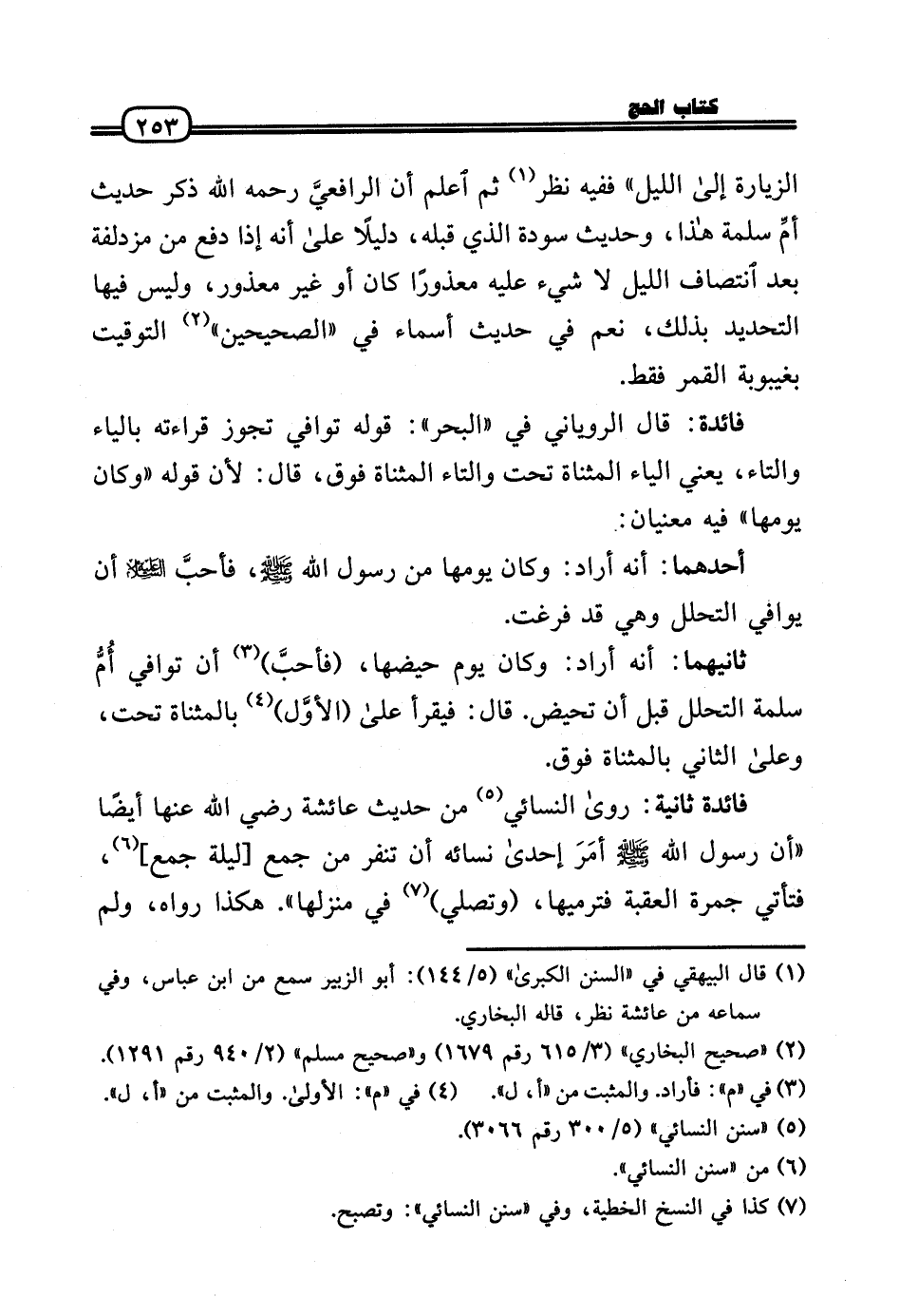 الزِّيَارَة إِلَى اللَّيْل» فَفِيهِ نظر ثمَّ اعْلَم أَن الرافعيَّ رَحِمَهُ اللَّهُ ذكر حَدِيث أمِّ سَلمَة هَذَا، وَحَدِيث سَوْدَة الَّذِي قبله، دَلِيلا عَلَى أَنه إِذا دفع من مُزْدَلِفَة بعد انتصاف اللَّيْل لَا شَيْء عَلَيْهِ مَعْذُورًا كَانَ أَو غير مَعْذُور، وَلَيْسَ فِيهَا التَّحْدِيد بذلك، نعم فِي حَدِيث أَسمَاء فِي «الصَّحِيحَيْنِ» التَّوْقِيت بغيبوبة الْقَمَر فَقَط.