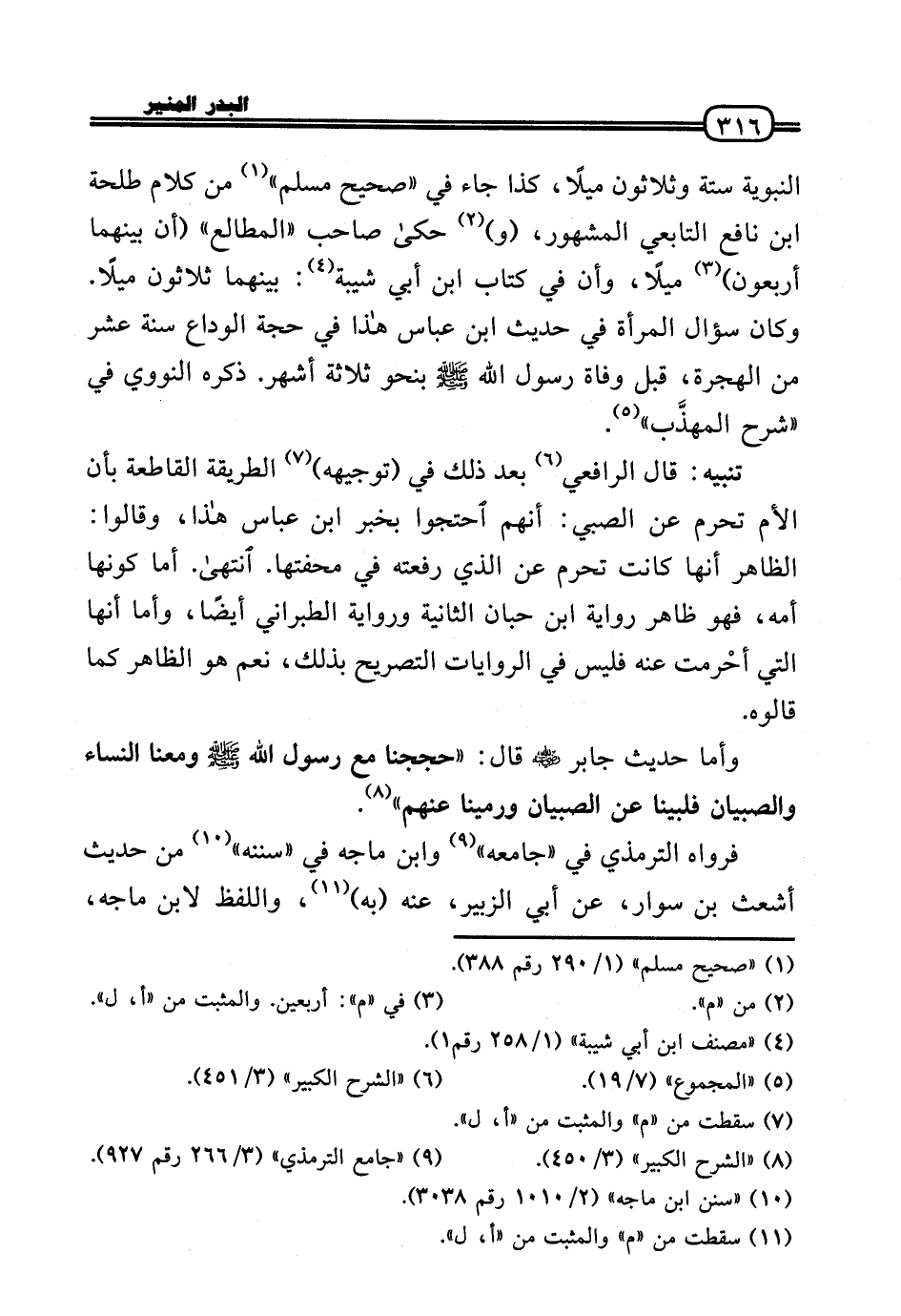 تَنْبِيه: قَالَ الرَّافِعِيّ بعد ذَلِك فِي (تَوْجِيهه) الطَّرِيقَة القاطعة بِأَن الْأُم تحرم عَن الصَّبِي: أَنهم احْتَجُّوا بِخَبَر ابْن عَبَّاس هَذَا، وَقَالُوا: الظَّاهِر أَنَّهَا كَانَت تحرم عَن الَّذِي رفعته فِي محفتها. انْتَهَى. أما كَونهَا أمه، فَهُوَ ظَاهر رِوَايَة ابْن حبَان الثَّانِيَة وَرِوَايَة الطَّبَرَانِيّ أَيْضا، وَأما أَنَّهَا الَّتِي أحْرمت عَنهُ فَلَيْسَ فِي الرِّوَايَات التَّصْرِيح بذلك، نعم هُوَ الظَّاهِر كَمَا قَالُوهُ.
