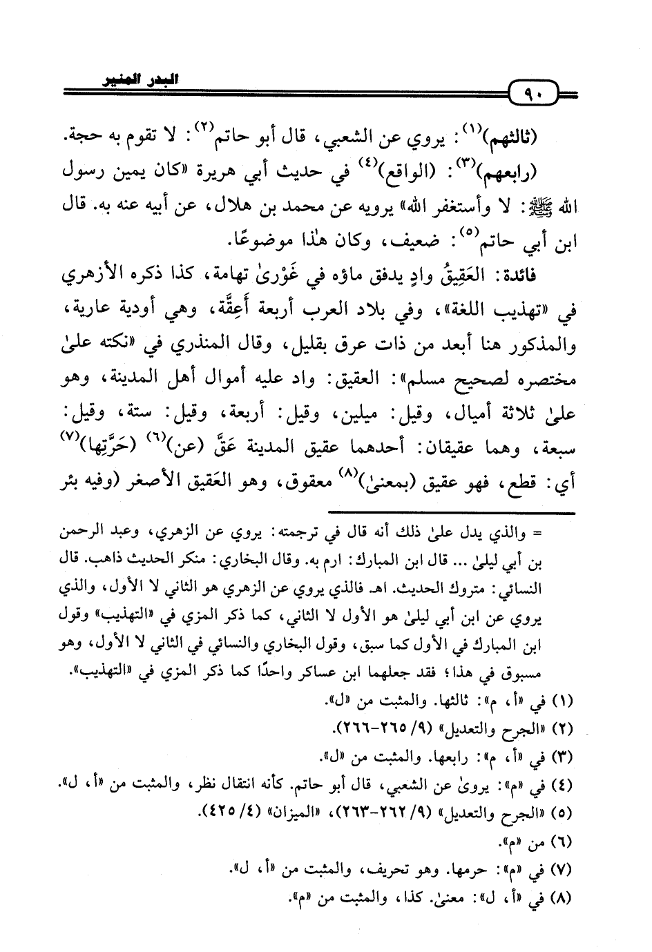 فَائِدَة: العَقِيقُ وادٍ يدفق مَاؤُهُ فِي غَوْرَى تهَامَة، كَذَا ذكره الْأَزْهَرِي فِي «تَهْذِيب اللُّغَة» ، وَفِي بِلَاد الْعَرَب أَرْبَعَة أَعِقَّة، وَهِي أَوديَة عَارِية، وَالْمَذْكُور هُنَا أبعد من ذَات عرق بِقَلِيل، وَقَالَ الْمُنْذِرِيّ فِي «نكته عَلَى مُخْتَصره لصحيح مُسلم» : العقيق: وَاد عَلَيْهِ أَمْوَال أهل الْمَدِينَة، وَهُوَ عَلَى ثَلَاثَة أَمْيَال، وَقيل: ميلين، وَقيل: أَرْبَعَة، وَقيل: سِتَّة، وَقيل: سَبْعَة، وهما عقيقان: أَحدهمَا عقيق الْمَدِينَة عَقَّ (عَن) (حَرَّتِها) أَي: قطع، فَهُوَ عقيق (بِمَعْنى) معقوق، وَهُوَ العَقيق الْأَصْغَر (وَفِيه بِئْر