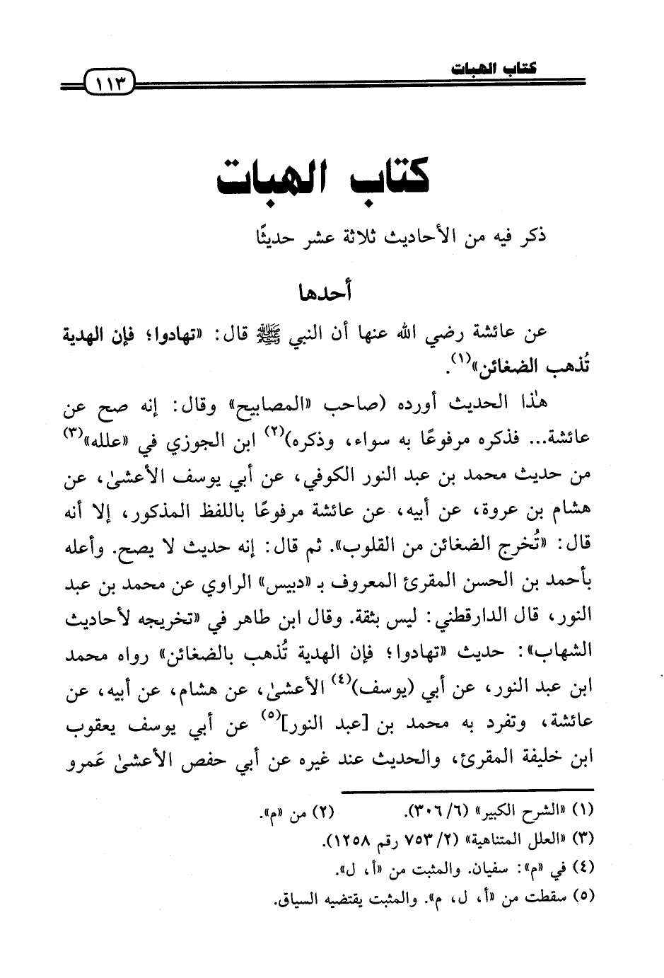 هَذَا الحَدِيث أوردهُ (صَاحب «المصابيح» وَقَالَ: إِنَّه صَحَّ عَن عَائِشَة ... فَذكره مَرْفُوعا بِهِ سَوَاء، وَذكره) ابْنُ الْجَوْزِيّ فِي «علله» من حَدِيث مُحَمَّد بن عبد النُّور الْكُوفِي، عَن أبي يُوسُف الْأَعْشَى، عَن هِشَام بن عُرْوَة، عَن أَبِيه، عَن عَائِشَة مَرْفُوعا بِاللَّفْظِ الْمَذْكُور، إِلَّا أَنه قَالَ: «تُخرج الضغائن من الْقُلُوب» . ثمَّ قَالَ: إِنَّه حَدِيث لَا يَصح. وَأعله بِأَحْمَد بن الْحسن الْمُقْرِئ الْمَعْرُوف ب «دبيس» الرَّاوِي عَن مُحَمَّد بن عبد النُّور، قَالَ الدَّارَقُطْنِيّ: لَيْسَ بِثِقَة. وَقَالَ ابْن طَاهِر فِي «تَخْرِيجه لأحاديث الشهَاب» : حَدِيث «تهادوا؛ فَإِن الْهَدِيَّة تُذهب بالضغائن» رَوَاهُ مُحَمَّد بن عبد النُّور، عَن أبي (يُوسُف) الْأَعْشَى، عَن هِشَام، عَن أَبِيه، عَن عَائِشَة، وَتفرد بِهِ مُحَمَّد بن [عبد النُّور] عَن أبي يُوسُف يَعْقُوب بن خَليفَة الْمُقْرِئ، والْحَدِيث عِنْد غَيره عَن أبي حَفْص الْأَعْشَى عَمرو