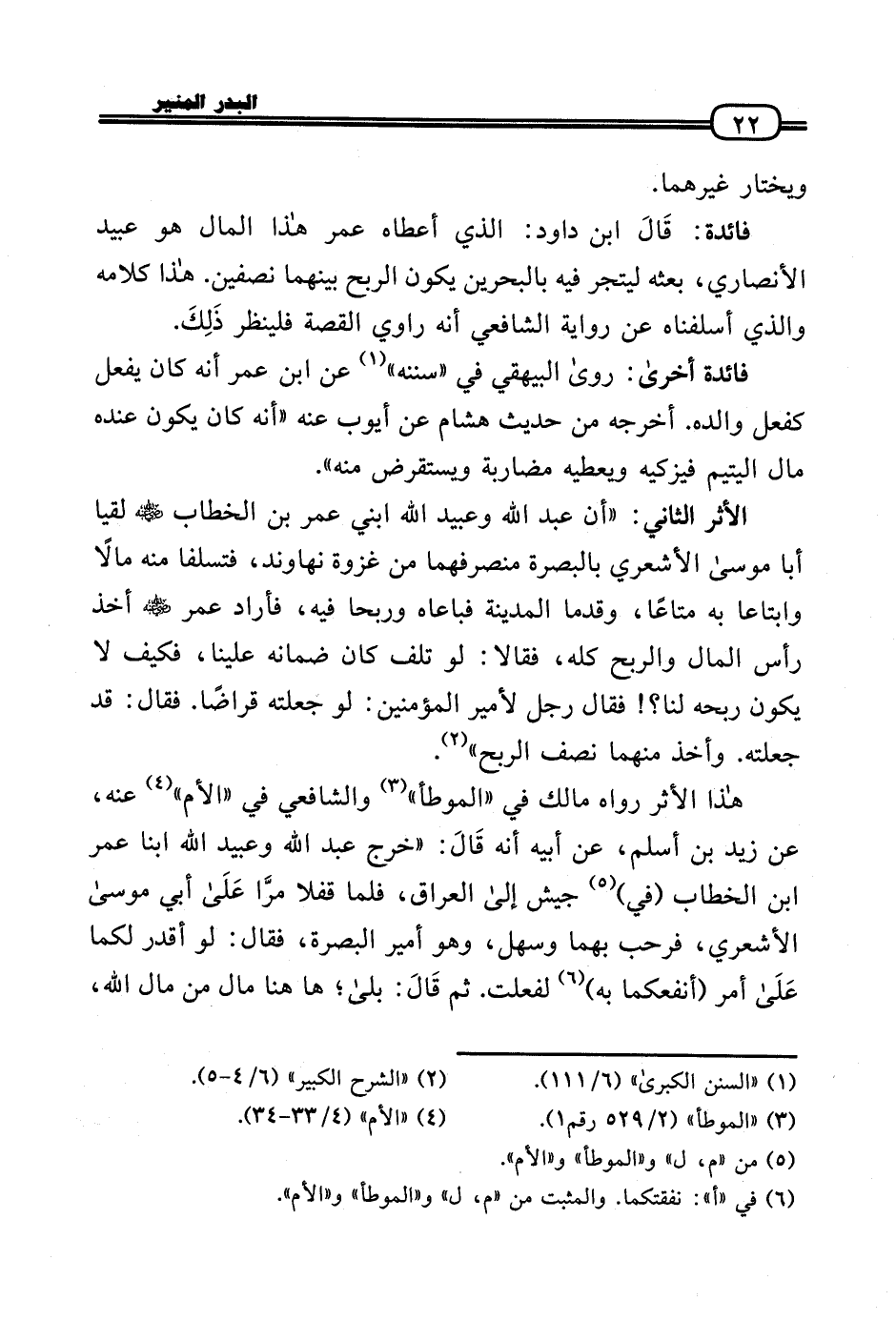 هَذَا الْأَثر رَوَاهُ مَالك فِي «الْمُوَطَّأ» وَالشَّافِعِيّ فِي «الْأُم» عَنهُ، عَن زيد بن أسلم، عَن أَبِيه أَنه قَالَ: «خرج عبد الله وَعبيد الله ابْنا عمر بن الْخطاب (فِي) جَيش إِلَى الْعرَاق، فَلَمَّا قفلا مرَّا عَلَى أبي مُوسَى الْأَشْعَرِيّ، فَرَحَّبَ بهما وَسَهل، وَهُوَ أَمِير الْبَصْرَة، فَقَالَ: لَو أقدر لَكمَا عَلَى أَمر (أنفعكما بِهِ) لفَعَلت. ثمَّ قَالَ: بلَى؛ هَا هُنَا مَال من مَال الله،
