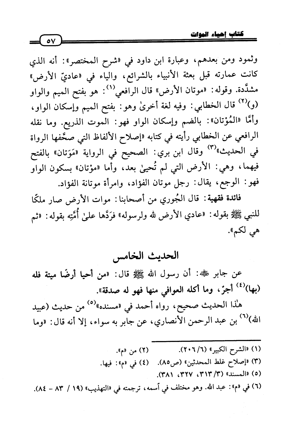 وَثَمُود وَمن بعدهمْ، وَعبارَة ابْن دَاوُد فِي «شرح الْمُخْتَصر» : أَنه الَّذِي كَانَت عِمَارَته قبل بعثة الْأَنْبِيَاء بالشرائع، وَالْيَاء فِي «عاديّ الأَرْض» مشدَّدة. وَقَوله: «موتان الأَرْض» قَالَ الرَّافِعِيّ: هُوَ بِفَتْح الْمِيم وَالْوَاو (و) قَالَ الْخطابِيّ: وَفِيه لُغَة أُخْرَى وَهُوَ: بِفَتْح الْمِيم وَإِسْكَان الْوَاو، وأمَّا «المُوْتان» : بِالضَّمِّ وَإِسْكَان الْوَاو فَهُوَ: الْمَوْت الذريع. وَمَا نَقله الرَّافِعِيّ عَن الْخطابِيّ رَأَيْته فِي كِتَابه «إصْلَاح الْأَلْفَاظ الَّتِي صحَّفها الروَاة فِي الحَدِيث» وَقَالَ ابْن بري: الصَّحِيح فِي الرِّوَايَة «مَوَتان» بِالْفَتْح فيهمَا، وَهِي: الأَرْض الَّتِي لم تُحيى بعد، وَأما «موْتان» بِسُكُون الْوَاو فَهُوَ: الوجع، يُقَال: رجل موتان الْفُؤَاد، وَامْرَأَة موتانة الْفُؤَاد.