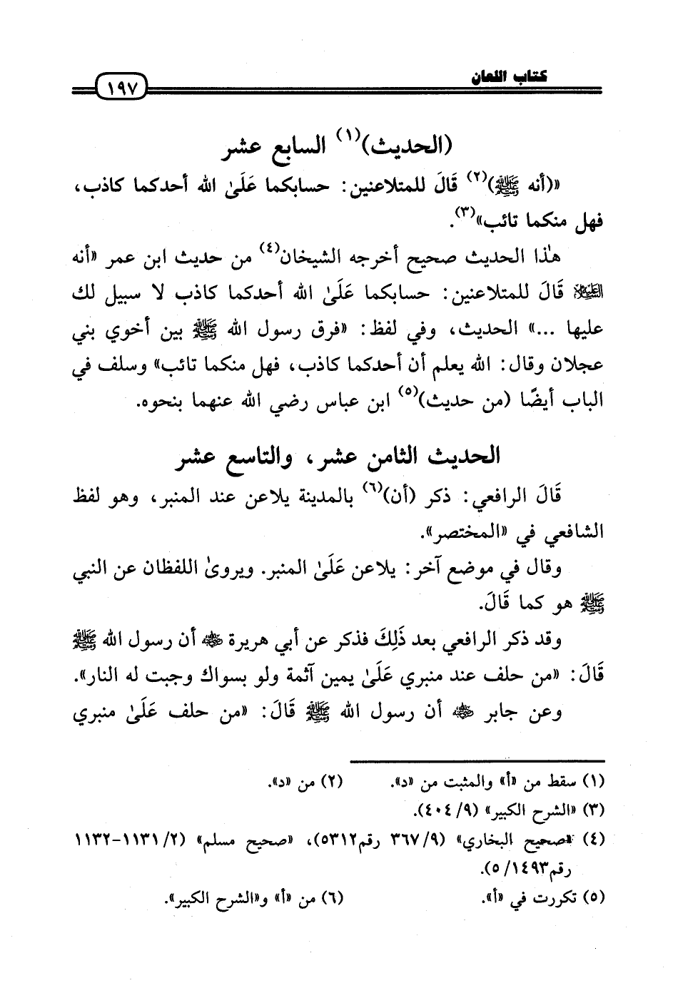 هَذَا الحَدِيث صَحِيح أخرجه الشَّيْخَانِ من حَدِيث ابْن عمر (أَنه عَلَيْهِ السَّلَام قَالَ للمتلاعنين: حسابكما عَلَى الله أَحَدكُمَا كَاذِب لَا سَبِيل لَك عَلَيْهَا ... » الحَدِيث، وَفِي لفظ: «فرق رَسُول الله - صَلَّى الله عَلَيْهِ وَسلم - بَين أخوي بني عجلَان وَقَالَ: الله يعلم أَن أَحَدكُمَا كَاذِب، فَهَل مِنْكُمَا تائب» وَسلف فِي الْبَاب أَيْضا (من حَدِيث) ابْن عَبَّاس رَضي اللهُ عَنهما بِنَحْوِهِ.