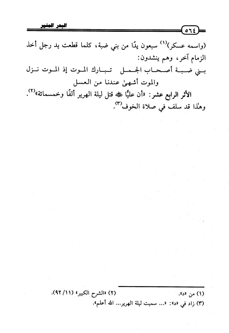 «أَن عليًّا رَضِيَ اللَّهُ عَنْه قتل لَيْلَة الهرير ألفا وَخَمْسمِائة» . وَهَذَا قد سلف فِي صَلَاة الْخَوْف.