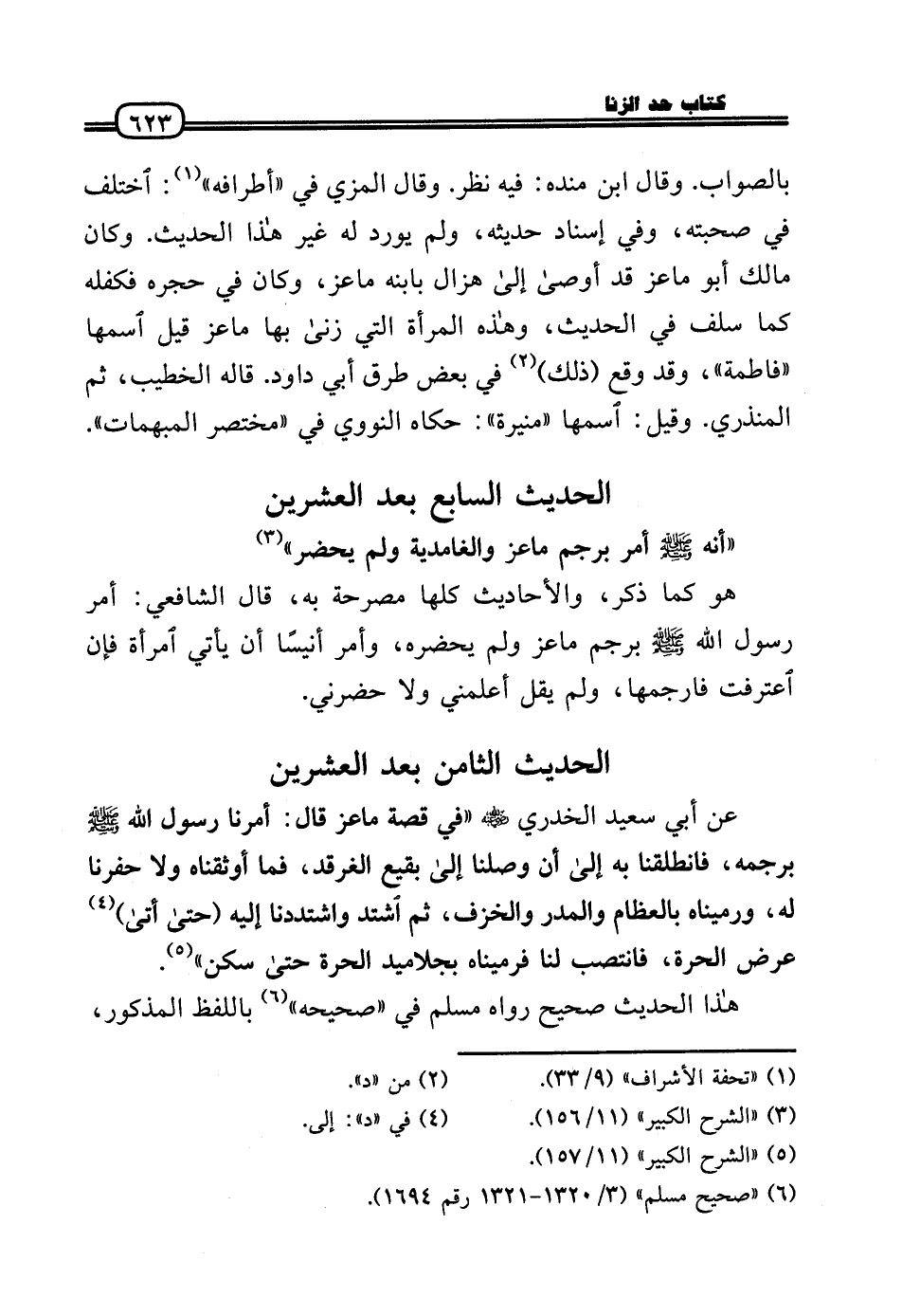 «أنَّه - صَلَّى الله عَلَيْهِ وَسلم - أَمر برجم مَاعِز والغامدية وَلم يحضر»