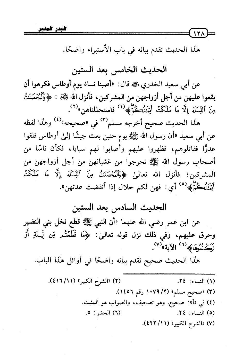 هَذَا الحَدِيث صَحِيح أخرجه مُسلم فِي «صَحِيحه» وَهَذَا لَفظه عَن أبي سعيد «أَن رَسُول الله - صَلَّى الله عَلَيْهِ وَسلم - يَوْم حنين بعث جَيْشًا إِلَى أَوْطَاس فَلَقوا عدوًّا فقاتلوهم، فظهروا عَلَيْهِم وَأَصَابُوا لَهُم سَبَايَا، فَكَأَن نَاسا من أَصْحَاب رَسُول الله - صَلَّى الله عَلَيْهِ وَسلم - تحرجوا من غشيانهن من أجل أَزوَاجهنَّ من الْمُشْركين؛ فَأنْزل الله تَعَالَى (وَالْمُحصنَات من النِّسَاء إِلَّا مَا ملكت أَيْمَانكُم) أَي: فهن لكم حَلَال إِذا انْقَضتْ عدتهن» .