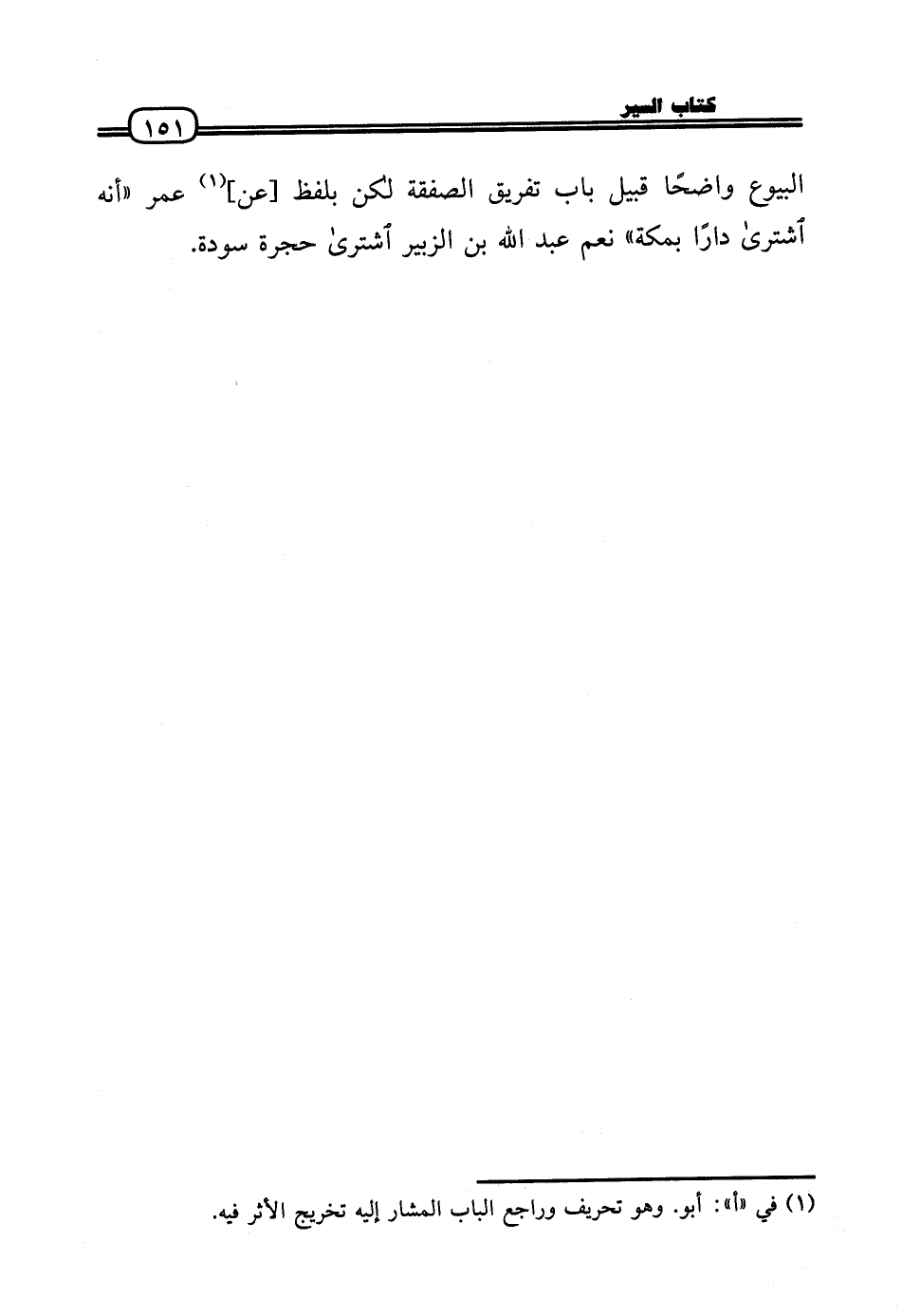 الْبيُوع وَاضحا قبيل بَاب تَفْرِيق الصَّفْقَة لَكِن بِلَفْظ [عَن] عمر «أَنه اشْتَرَى دَارا بِمَكَّة» ، نعم عبد الله بن الزبير اشْتَرَى حجرَة سَوْدَة.