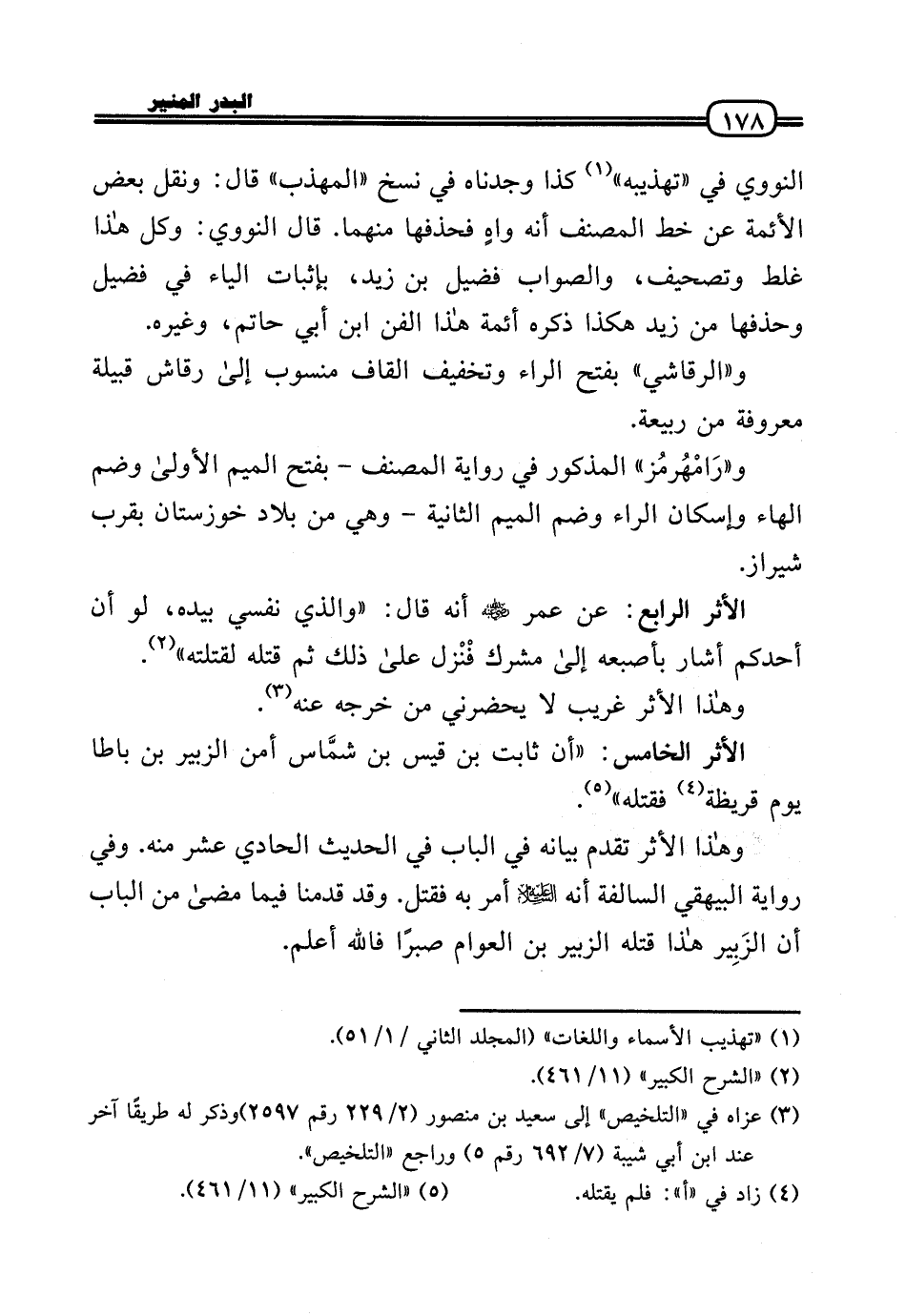 وَهَذَا الْأَثر تقدم بَيَانه فِي الْبَاب فِي الحَدِيث الْحَادِي عشر مِنْهُ. وَفِي رِوَايَة الْبَيْهَقِيّ السالفة أَنه عَلَيْهِ السَّلَام أَمر بِهِ فَقتل. وَقد قدمنَا فِيمَا مَضَى من الْبَاب أَن الزبير هَذَا قَتله الزبير بن الْعَوام صبرا فَالله أعلم.