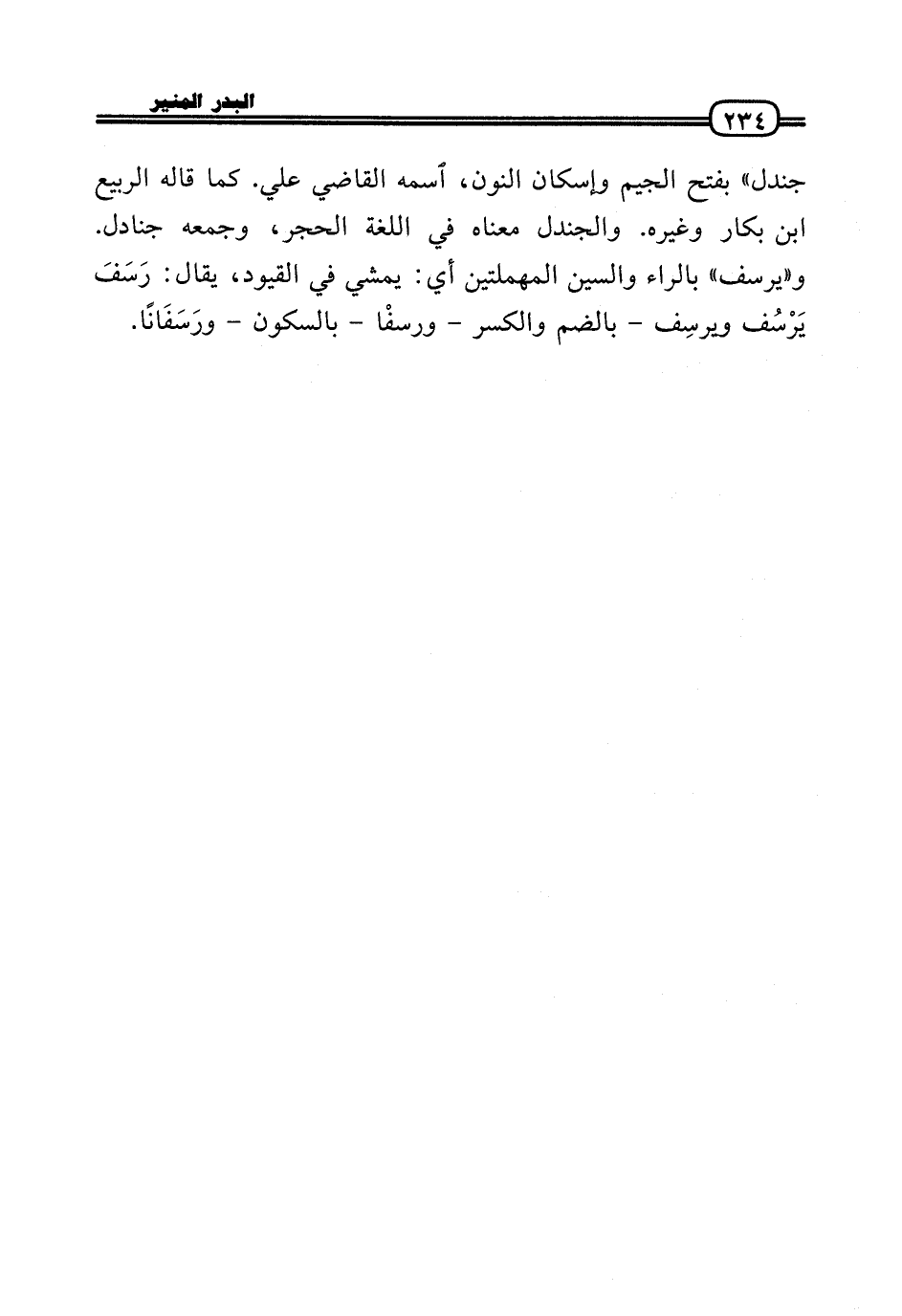 جندل» بِفَتْح الْجِيم وَإِسْكَان النُّون، اسْمه القَاضِي عَلّي. كَمَا قَالَه الرّبيع بن بكار وَغَيره. والجندل مَعْنَاهُ فِي اللُّغَة الْحجر، وَجمعه جنادل. و «يرسف» بالراء وَالسِّين الْمُهْمَلَتَيْنِ أَي: يمشي فِي الْقُيُود، يُقَال: رَسَفَ يَرْسُف ويرسِف - بِالضَّمِّ وَالْكَسْر - ورسفْا - بِالسُّكُونِ - ورَسَفَانًا.