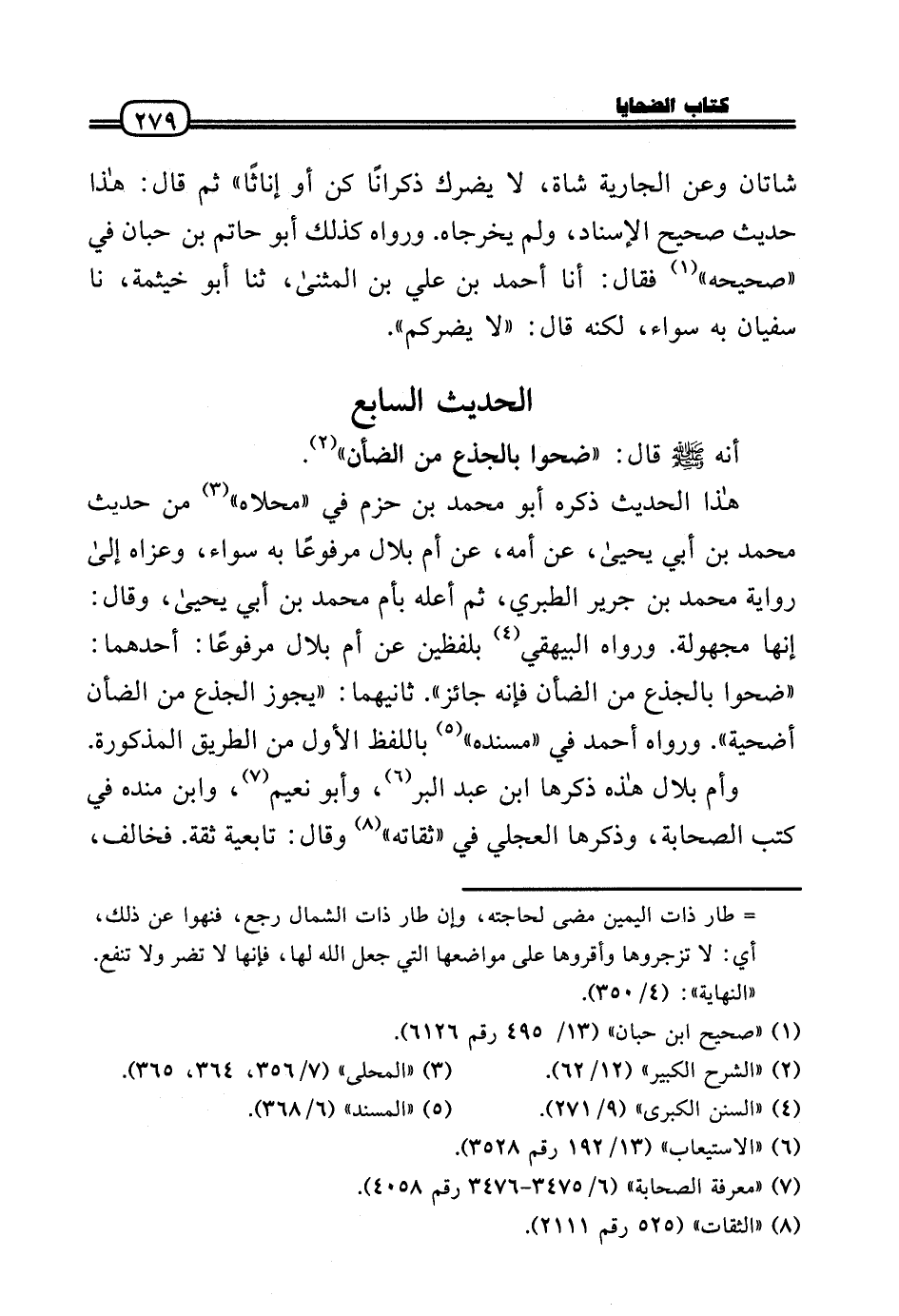 شَاتَان وَعَن الْجَارِيَة شَاة، لَا يَضرك ذكرانًا كن أَو إِنَاثًا» ثمَّ قَالَ: هَذَا حَدِيث صَحِيح الْإِسْنَاد، وَلم يخرجَاهُ. وَرَوَاهُ كَذَلِك أَبُو حَاتِم بن حبَان فِي «صَحِيحه» فَقَالَ: أَنا أَحْمد بن عَلّي بن الْمثنى، ثَنَا أَبُو خَيْثَمَة، نَا سُفْيَان بِهِ سَوَاء، لكنه قَالَ: «لَا يضركم» .
