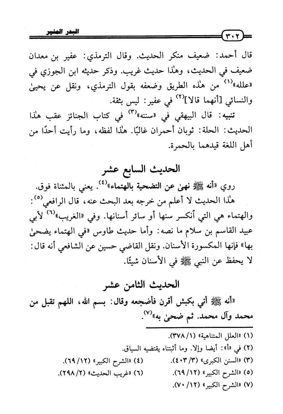 هَذَا الحَدِيث لَا أعلم من خرجه بعد الْبَحْث عَنهُ، قَالَ الرَّافِعِيّ: والهتماء هِيَ الَّتِي انْكَسَرَ سنّهَا أَو سَائِر أسنانها. وَفِي «الْغَرِيب» لأبي عبيد الْقَاسِم بن سَلام مَا نَصه: وَأما حَدِيث طَاوس «فِي الهتماء يضحى بهَا» فَإِنَّهَا الْمَكْسُورَة الْأَسْنَان. وَنقل القَاضِي حُسَيْن عَن الشَّافِعِي أَنه قَالَ: لَا يحفظ عَن النَّبِي - صَلَّى الله عَلَيْهِ وَسلم - فِي الْأَسْنَان شَيْئا.
