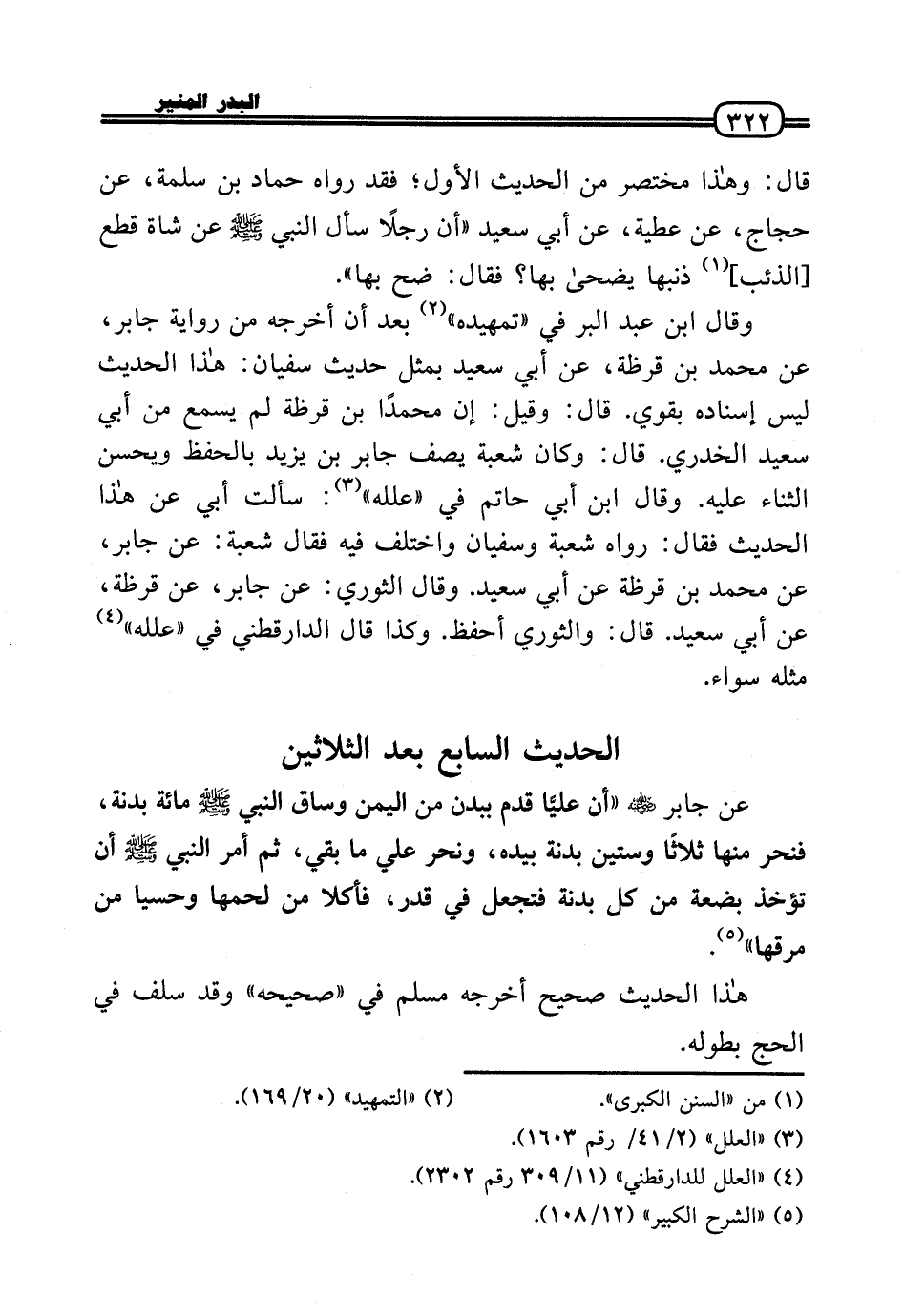 قَالَ: وَهَذَا مُخْتَصر من الحَدِيث الأول؛ فقد رَوَاهُ حَمَّاد بن سَلمَة، عَن حجاج، عَن عَطِيَّة، عَن أبي سعيد «أَن رجلا سَأَلَ النَّبِي - صَلَّى الله عَلَيْهِ وَسلم - عَن شَاة قطع [الذِّئْب] ذنبها يضحى بهَا؟ فَقَالَ: ضح بهَا» .