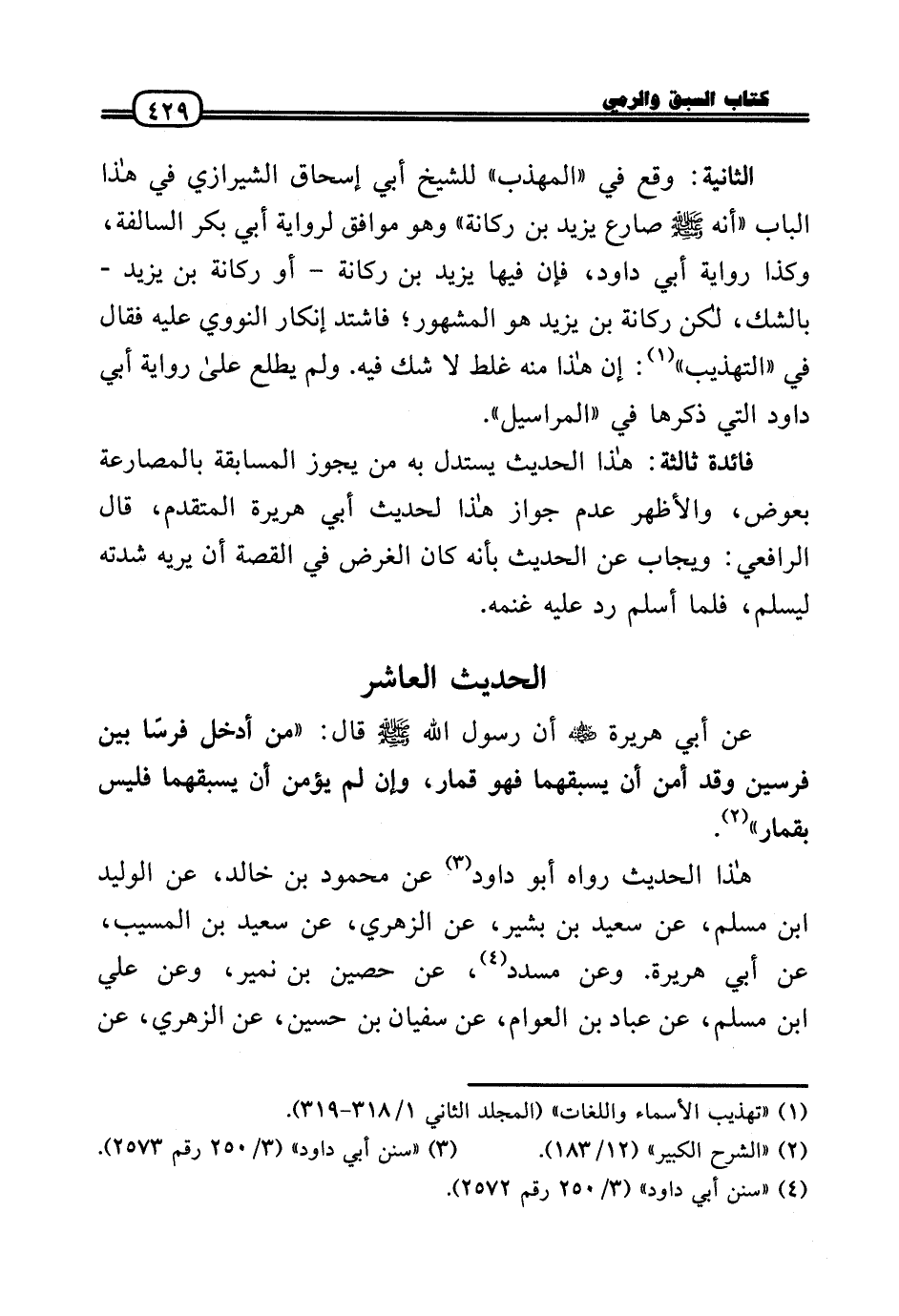 هَذَا الحَدِيث رَوَاهُ أَبُو دَاوُد عَن مَحْمُود بن خَالِد، عَن الْوَلِيد بن مُسلم، عَن سعيد بن بشير، عَن الزُّهْرِيّ، عَن سعيد بن الْمسيب، عَن أبي هُرَيْرَة. وَعَن مُسَدّد، عَن حُصَيْن بن نمير، وَعَن عَلّي بن مُسلم، عَن عباد بن الْعَوام، عَن سُفْيَان بن حُسَيْن، عَن الزُّهْرِيّ، عَن