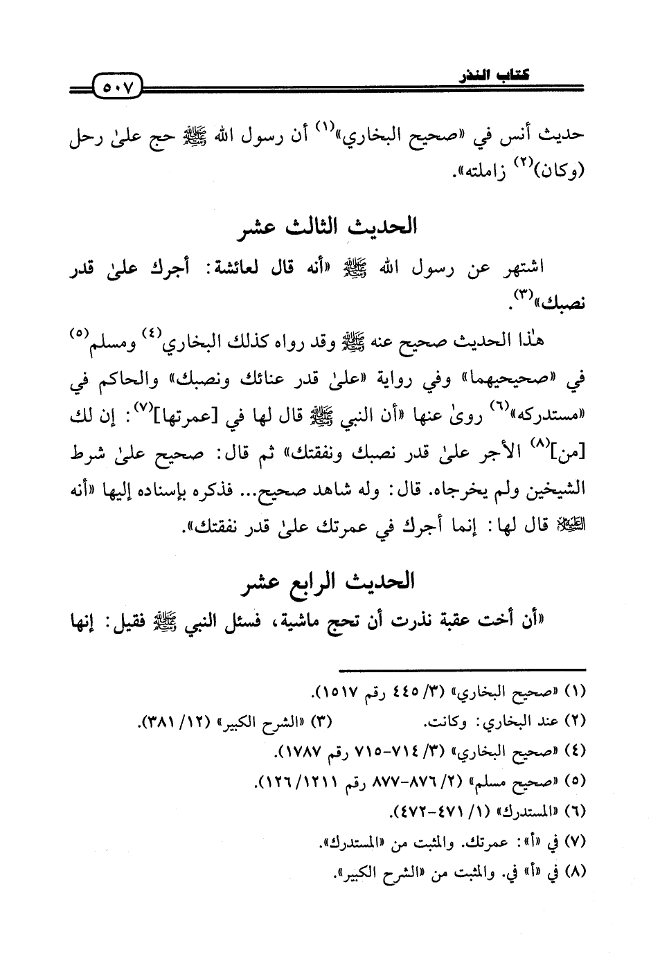 «أَن أُخْت عقبَة نذرت أَن تحج مَاشِيَة، فَسئلَ النَّبِي - صَلَّى الله عَلَيْهِ وَسلم - فَقيل: إِنَّهَا