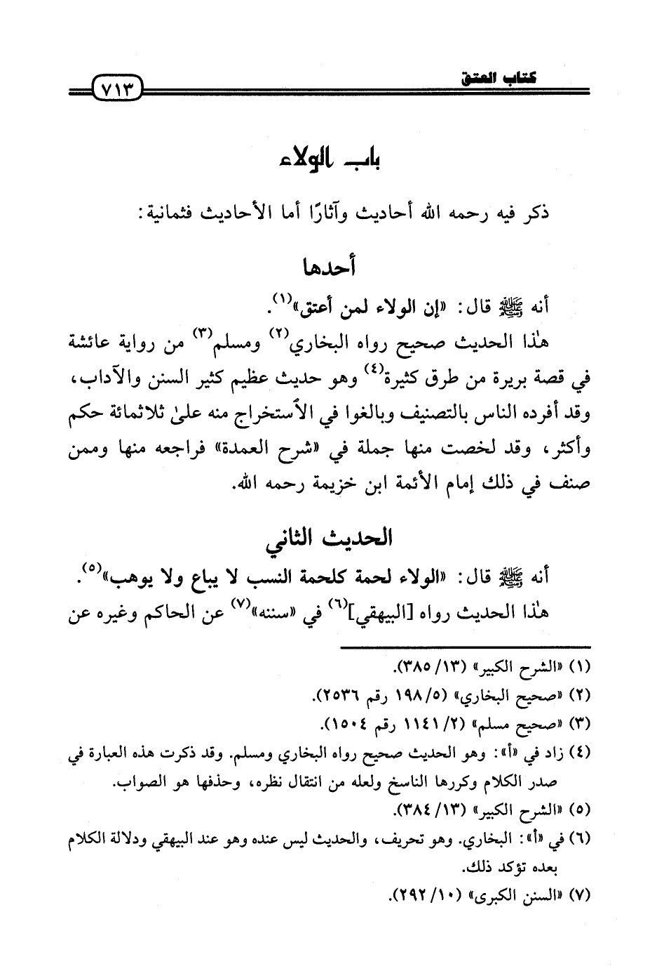 هَذَا الحَدِيث صَحِيح رَوَاهُ البُخَارِيّ وَمُسلم من رِوَايَة عَائِشَة فِي قصَّة بَرِيرَة من طرق كَثِيرَة وَهُوَ حَدِيث عَظِيم كثير السّنَن والآداب، وَقد أفرده النَّاس بالتصنيف وبالغوا فِي الاستخراج مِنْهُ عَلَى ثَلَاثمِائَة حكم وَأكْثر، وَقد لخصت مِنْهَا جملَة فِي «شرح الْعُمْدَة» فَرَاجعه مِنْهَا وَمِمَّنْ صنف فِي ذَلِك إِمَام الْأَئِمَّة ابْن خُزَيْمَة رَحِمَهُ اللَّهُ.