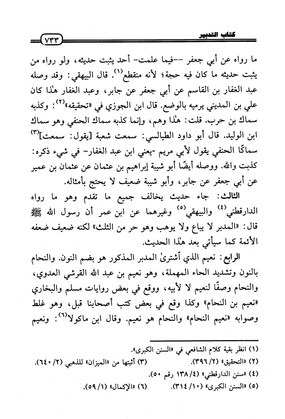 الثَّالِث: جَاءَ حَدِيث يُخَالف جَمِيع مَا تقدم وَهُوَ مَا رَوَاهُ الدَّارَقُطْنِيّ وَالْبَيْهَقِيّ وَغَيرهمَا عَن ابْن عمر أَن رَسُول الله - صَلَّى الله عَلَيْهِ وَسلم - قَالَ: «الْمُدبر لَا يُبَاع وَلَا يُوهب وَهُوَ حر من الثُّلُث» لكنه ضَعِيف ضعفه الْأَئِمَّة كَمَا سَيَأْتِي بعد هَذَا الحَدِيث.