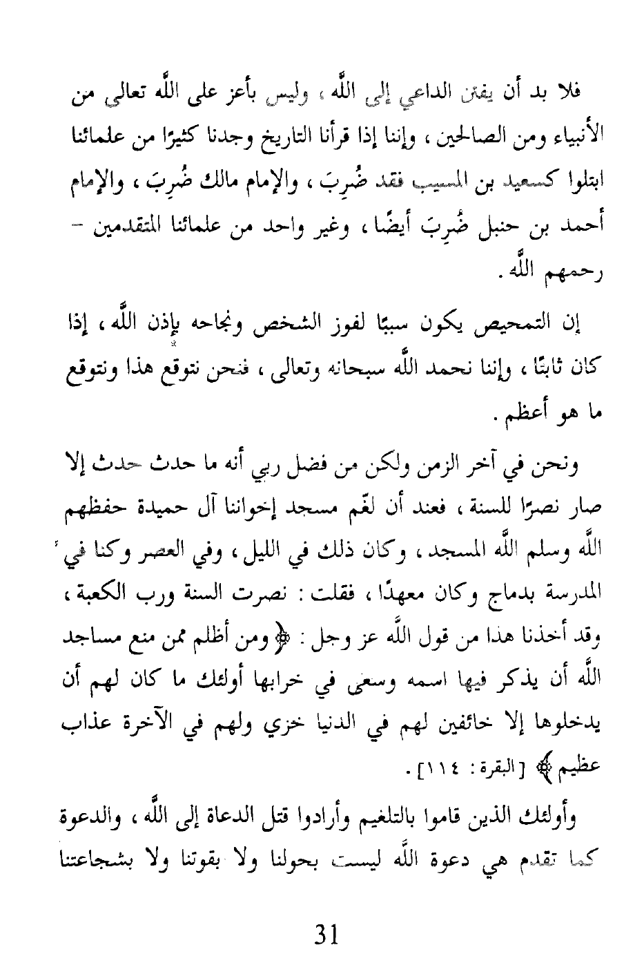 فلا بد أن يفتن الداعي إلى الله، وليس بأعز على الله تعالى من الأنبياء ومن الصالحين، وإننا إذا قرأنا التاريخ وجدنا كثيرًا من علمائنا ابتلوا كسعيد بن المسيب فقد ضُرِب، والإمام مالك ضُرِب، والإمام أحمد بن حنبل ضُرِب أيضًا، وغير واحد من علمائنا المتقدمين _ رحمهم الله.