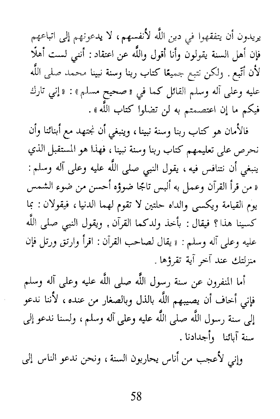 أما المنفرون عن سنة رسول الله صلى الله عليه وعلى آله وسلم فإني أخاف أن يصيبهم الله بالذل وبالصغار من عنده، لأننا ندعو إلى سنة رسول الله صلى الله عليه وعلى آله وسلم، ولسنا ندعو إلى سنة آبائنا وأجدادنا.