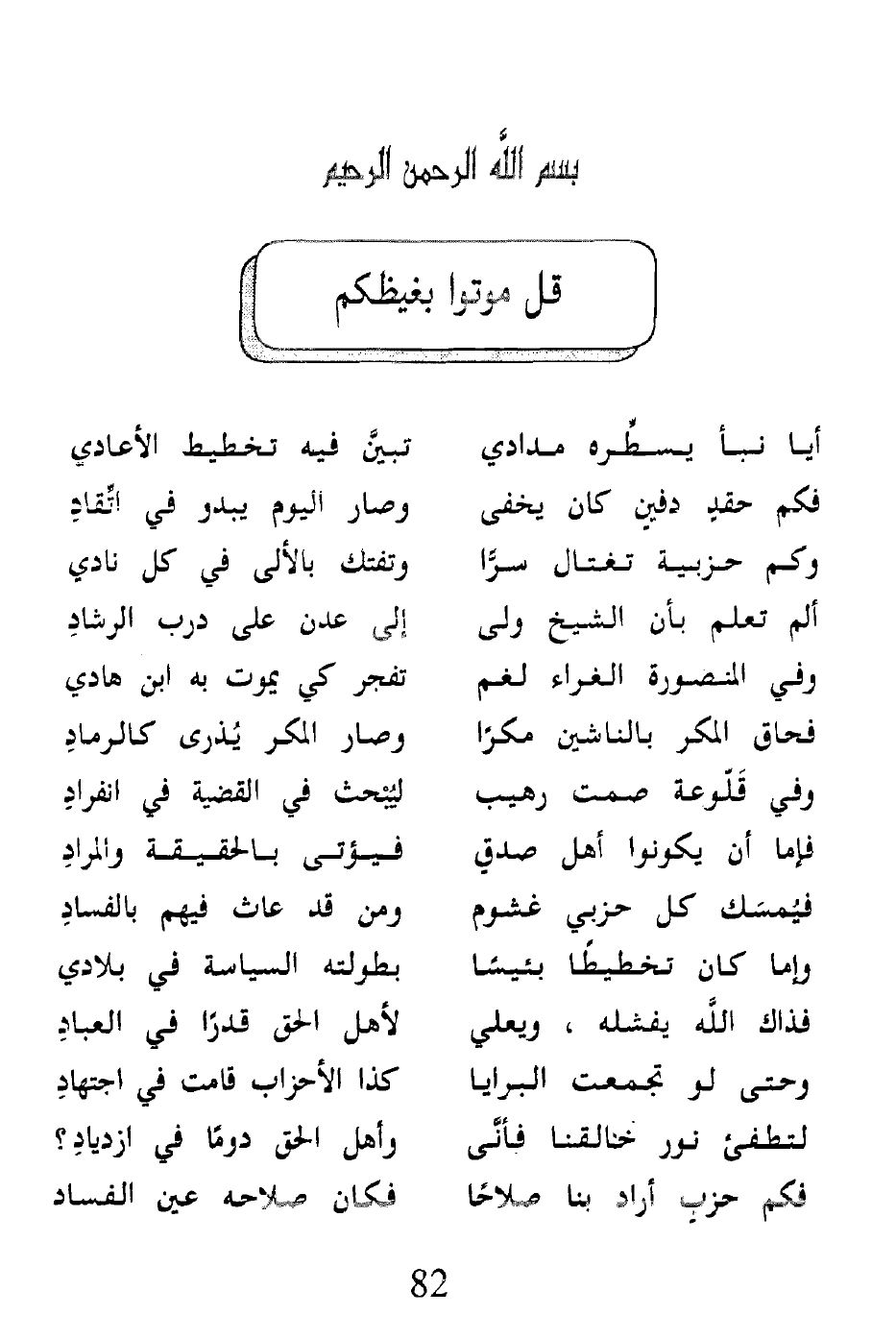 وكم حزبيةٍ تغتال سِرًا ... وتفتِكُ بالأُلى في كل نادي