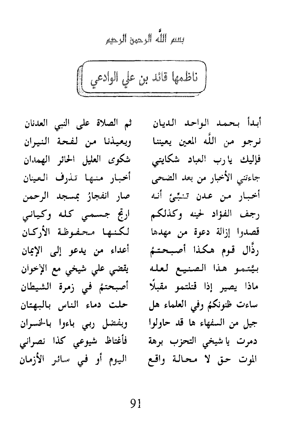 أخبار من عدن تنبِّىء أنه ... صار انفجارُ بمسجد الرحمن