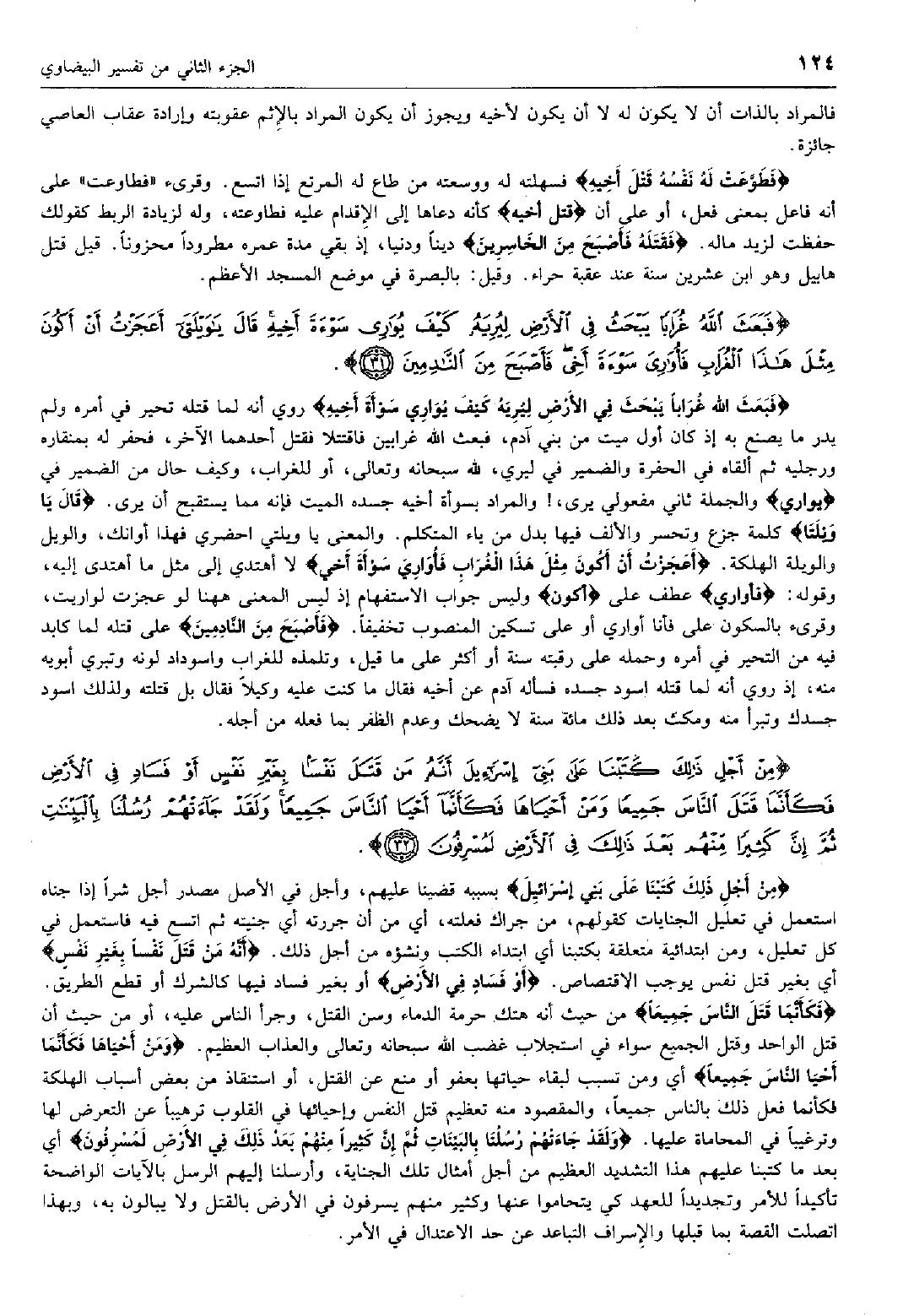 مِنْ أَجْلِ ذلِكَ كَتَبْنا عَلى بَنِي إِسْرائِيلَ أَنَّهُ مَنْ قَتَلَ نَفْساً بِغَيْرِ نَفْسٍ أَوْ فَسادٍ فِي الْأَرْضِ فَكَأَنَّما قَتَلَ النَّاسَ جَمِيعاً وَمَنْ أَحْياها فَكَأَنَّما أَحْيَا النَّاسَ جَمِيعاً وَلَقَدْ جاءَتْهُمْ رُسُلُنا بِالْبَيِّناتِ ثُمَّ إِنَّ كَثِيراً مِنْهُمْ بَعْدَ ذلِكَ فِي الْأَرْضِ لَمُسْرِفُونَ (32)