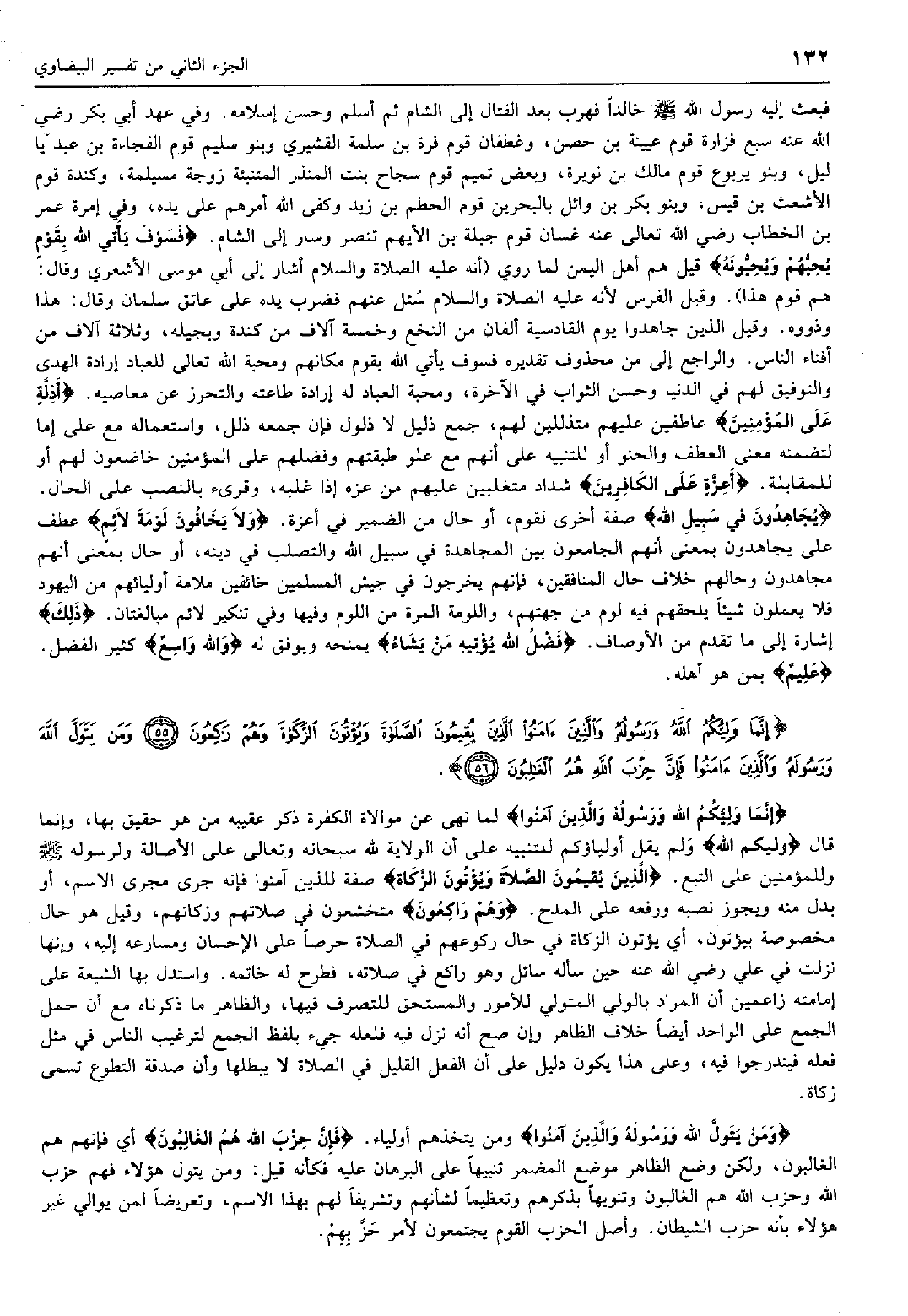 إِنَّما وَلِيُّكُمُ اللَّهُ وَرَسُولُهُ وَالَّذِينَ آمَنُوا الَّذِينَ يُقِيمُونَ الصَّلاةَ وَيُؤْتُونَ الزَّكاةَ وَهُمْ راكِعُونَ (55) وَمَنْ يَتَوَلَّ اللَّهَ وَرَسُولَهُ وَالَّذِينَ آمَنُوا فَإِنَّ حِزْبَ اللَّهِ هُمُ الْغالِبُونَ (56)