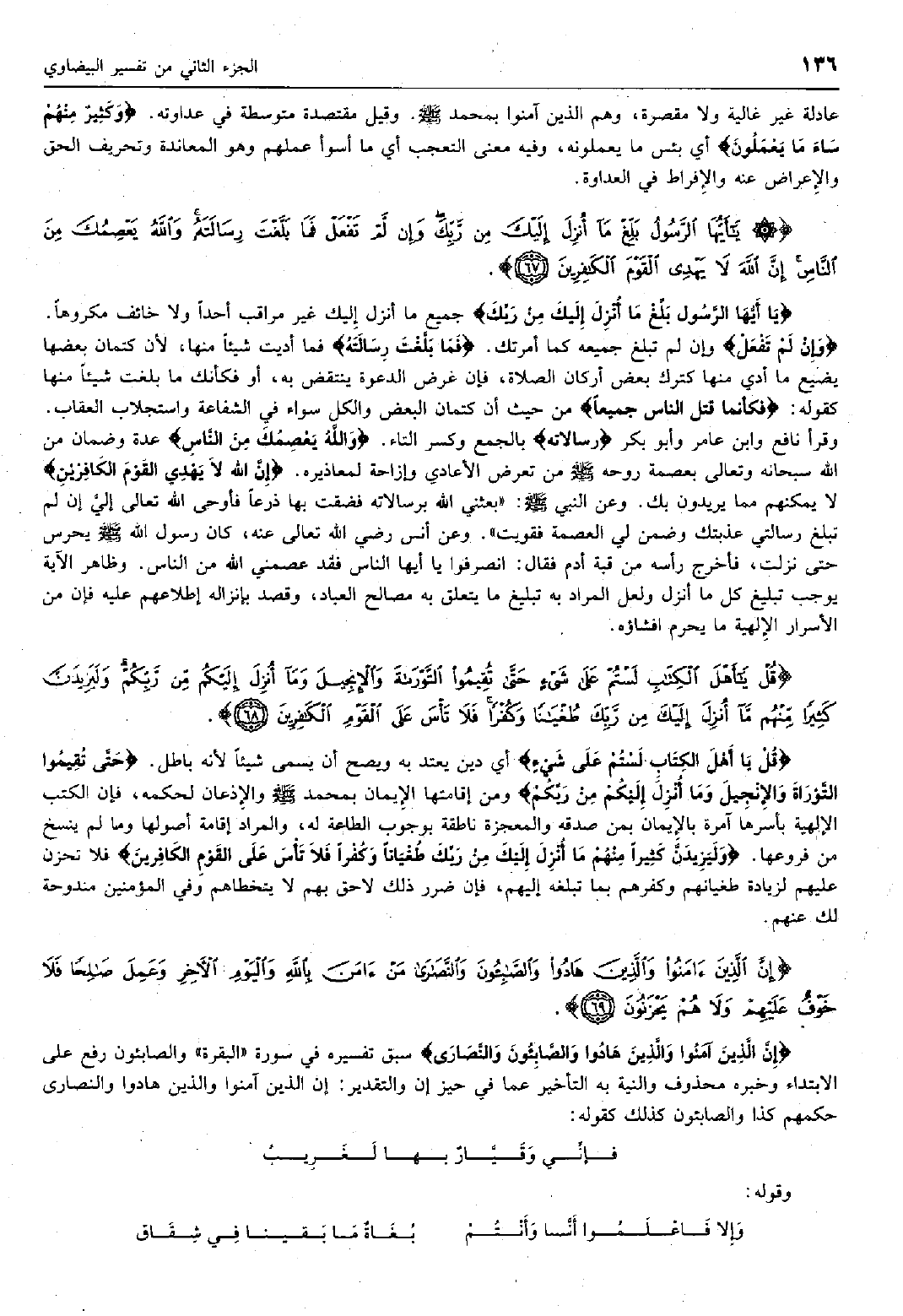 يا أَيُّهَا الرَّسُولُ بَلِّغْ مَا أُنْزِلَ إِلَيْكَ مِنْ رَبِّكَ وَإِنْ لَمْ تَفْعَلْ فَما بَلَّغْتَ رِسالَتَهُ وَاللَّهُ يَعْصِمُكَ مِنَ النَّاسِ إِنَّ اللَّهَ لاَ يَهْدِي الْقَوْمَ الْكافِرِينَ (67)