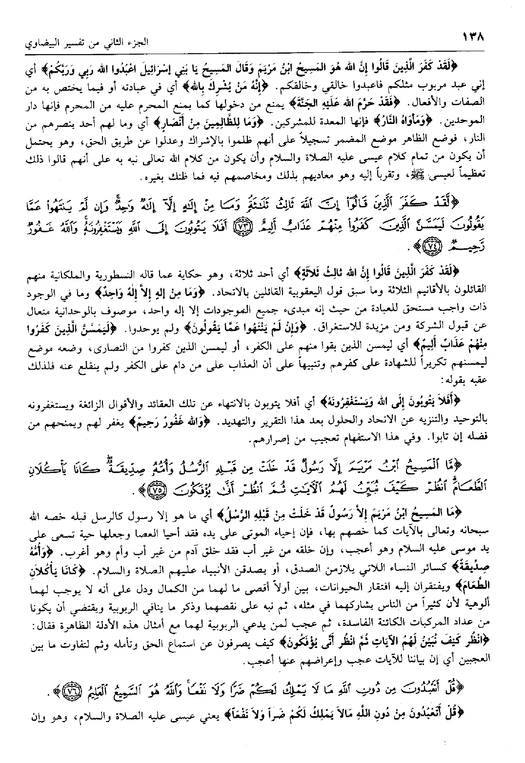 مَا الْمَسِيحُ ابْنُ مَرْيَمَ إِلاَّ رَسُولٌ قَدْ خَلَتْ مِنْ قَبْلِهِ الرُّسُلُ وَأُمُّهُ صِدِّيقَةٌ كانا يَأْكُلانِ الطَّعامَ انْظُرْ كَيْفَ نُبَيِّنُ لَهُمُ الْآياتِ ثُمَّ انْظُرْ أَنَّى يُؤْفَكُونَ (75)