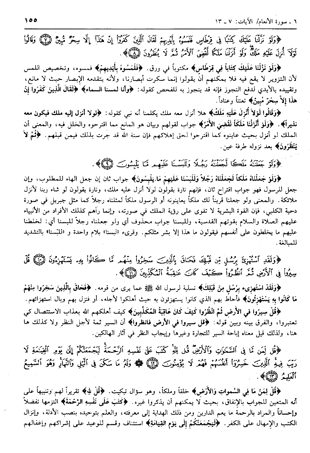 وَلَوْ نَزَّلْنا عَلَيْكَ كِتاباً فِي قِرْطاسٍ فَلَمَسُوهُ بِأَيْدِيهِمْ لَقالَ الَّذِينَ كَفَرُوا إِنْ هذا إِلاَّ سِحْرٌ مُبِينٌ (7) وَقالُوا لَوْلا أُنْزِلَ عَلَيْهِ مَلَكٌ وَلَوْ أَنْزَلْنا مَلَكاً لَقُضِيَ الْأَمْرُ ثُمَّ لا يُنْظَرُونَ (8)
