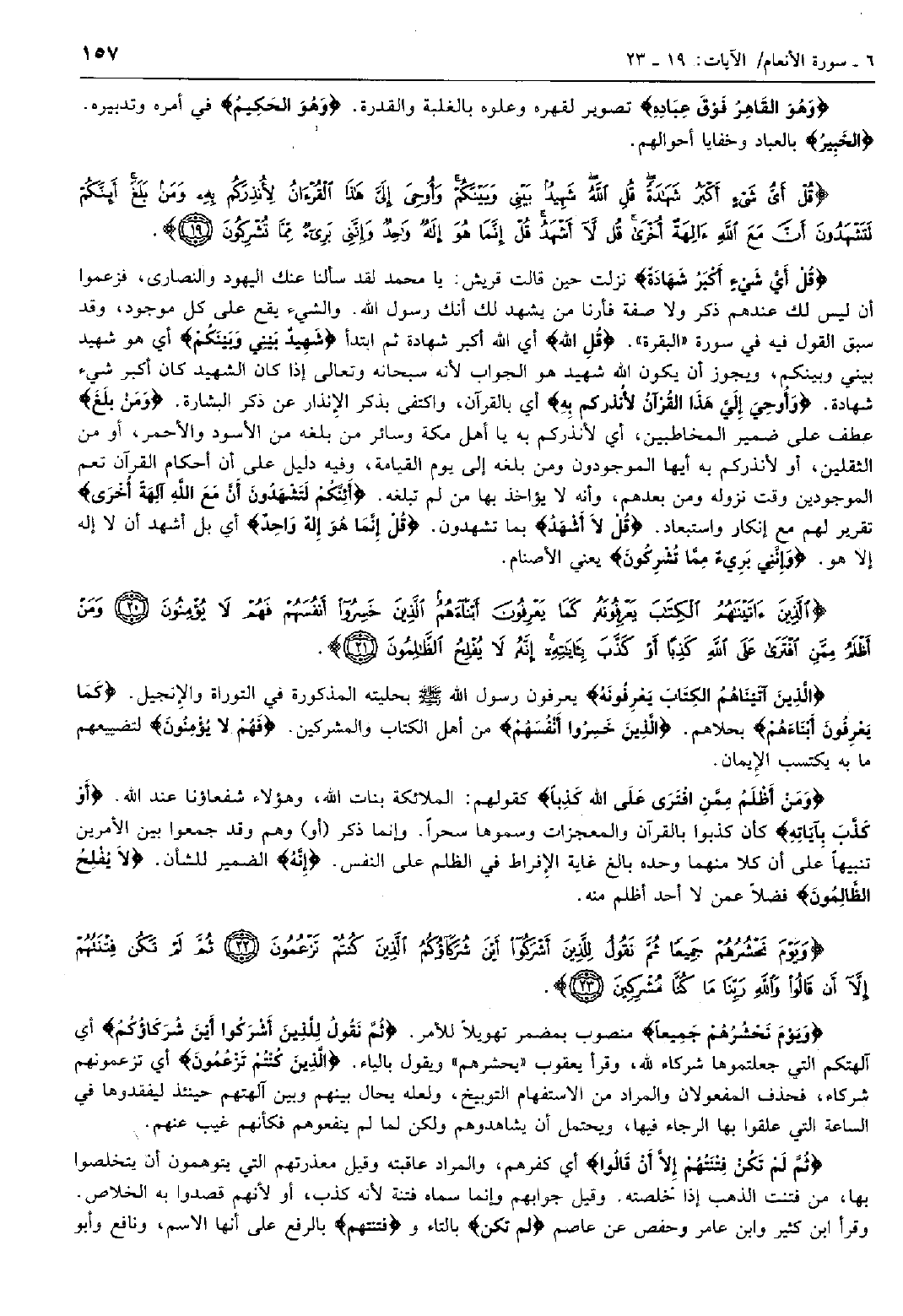 قُلْ أَيُّ شَيْءٍ أَكْبَرُ شَهادَةً قُلِ اللَّهُ شَهِيدٌ بَيْنِي وَبَيْنَكُمْ وَأُوحِيَ إِلَيَّ هذَا الْقُرْآنُ لِأُنْذِرَكُمْ بِهِ وَمَنْ بَلَغَ أَإِنَّكُمْ لَتَشْهَدُونَ أَنَّ مَعَ اللَّهِ آلِهَةً أُخْرى قُلْ لا أَشْهَدُ قُلْ إِنَّما هُوَ إِلهٌ واحِدٌ وَإِنَّنِي بَرِيءٌ مِمَّا تُشْرِكُونَ (19)