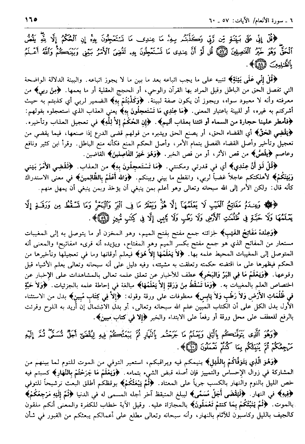 قُلْ إِنِّي عَلى بَيِّنَةٍ مِنْ رَبِّي وَكَذَّبْتُمْ بِهِ مَا عِنْدِي مَا تَسْتَعْجِلُونَ بِهِ إِنِ الْحُكْمُ إِلاَّ لِلَّهِ يَقُصُّ الْحَقَّ وَهُوَ خَيْرُ الْفاصِلِينَ (57) قُلْ لَوْ أَنَّ عِنْدِي ما تَسْتَعْجِلُونَ بِهِ لَقُضِيَ الْأَمْرُ بَيْنِي وَبَيْنَكُمْ وَاللَّهُ أَعْلَمُ بِالظَّالِمِينَ (58)