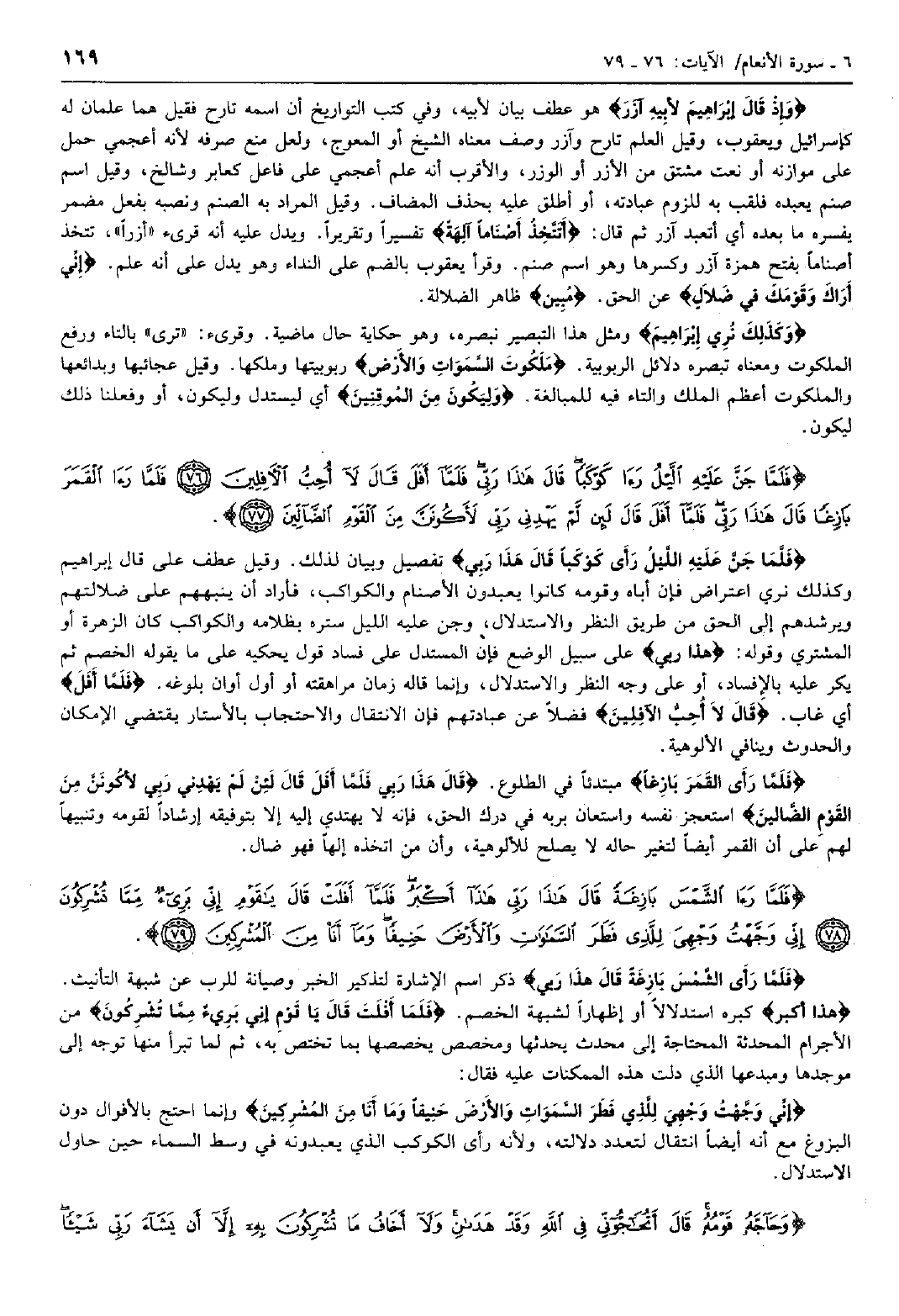 فَلَمَّا رَأَى الشَّمْسَ بازِغَةً قالَ هذا رَبِّي هذا أَكْبَرُ فَلَمَّا أَفَلَتْ قالَ يَا قَوْمِ إِنِّي بَرِيءٌ مِمَّا تُشْرِكُونَ (78) إِنِّي وَجَّهْتُ وَجْهِيَ لِلَّذِي فَطَرَ السَّماواتِ وَالْأَرْضَ حَنِيفاً وَما أَنَا مِنَ الْمُشْرِكِينَ (79)