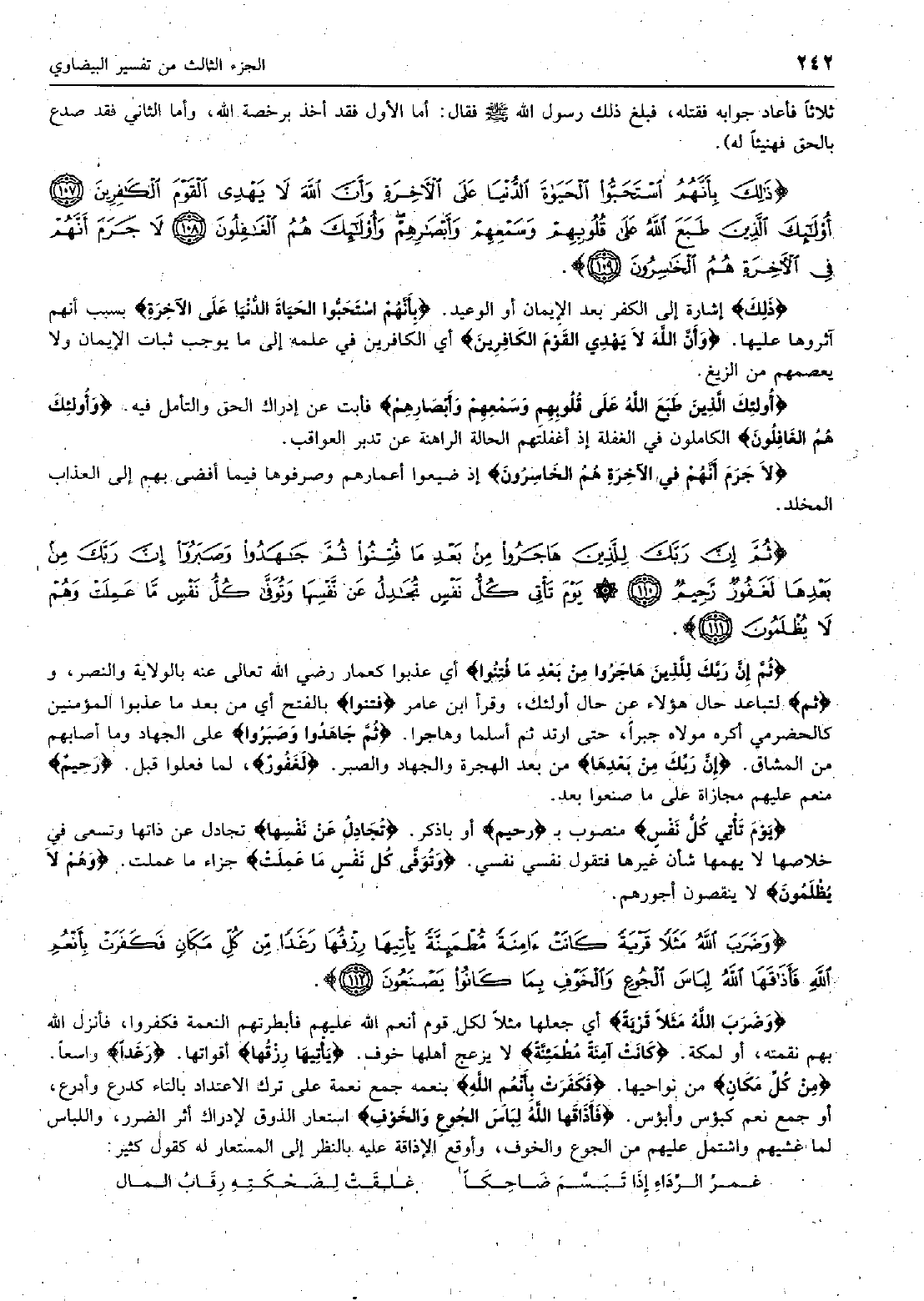ثُمَّ إِنَّ رَبَّكَ لِلَّذِينَ هاجَرُوا مِنْ بَعْدِ مَا فُتِنُوا ثُمَّ جاهَدُوا وَصَبَرُوا إِنَّ رَبَّكَ مِنْ بَعْدِها لَغَفُورٌ رَحِيمٌ (110) يَوْمَ تَأْتِي كُلُّ نَفْسٍ تُجادِلُ عَنْ نَفْسِها وَتُوَفَّى كُلُّ نَفْسٍ مَّا عَمِلَتْ وَهُمْ لاَ يُظْلَمُونَ (111)