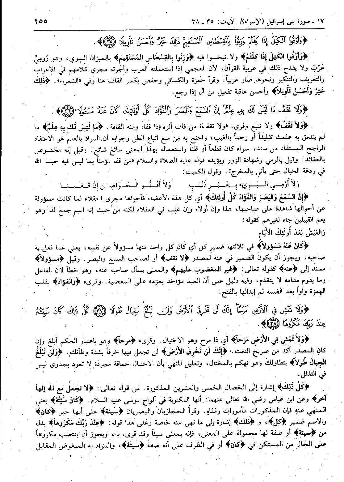 وَلا تَقْفُ مَا لَيْسَ لَكَ بِهِ عِلْمٌ إِنَّ السَّمْعَ وَالْبَصَرَ وَالْفُؤادَ كُلُّ أُولئِكَ كانَ عَنْهُ مَسْؤُلاً (36)