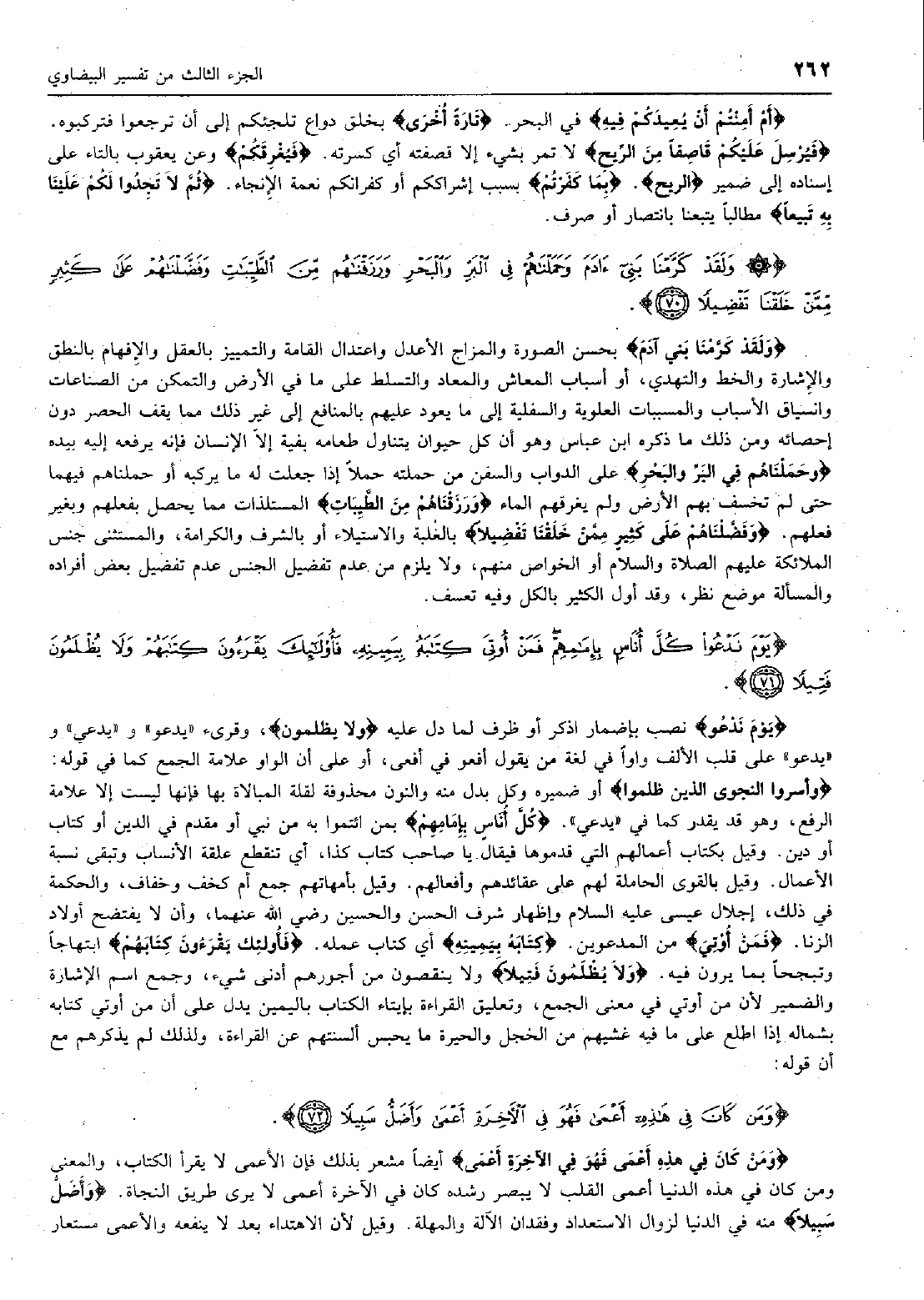 وَلَقَدْ كَرَّمْنا بَنِي آدَمَ وَحَمَلْناهُمْ فِي الْبَرِّ وَالْبَحْرِ وَرَزَقْناهُمْ مِنَ الطَّيِّباتِ وَفَضَّلْناهُمْ عَلى كَثِيرٍ مِمَّنْ خَلَقْنا تَفْضِيلاً (70)