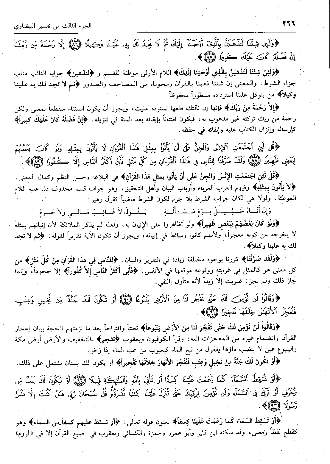 وَلَئِنْ شِئْنا لَنَذْهَبَنَّ بِالَّذِي أَوْحَيْنا إِلَيْكَ ثُمَّ لا تَجِدُ لَكَ بِهِ عَلَيْنا وَكِيلاً (86) إِلاَّ رَحْمَةً مِنْ رَبِّكَ إِنَّ فَضْلَهُ كانَ عَلَيْكَ كَبِيراً (87)