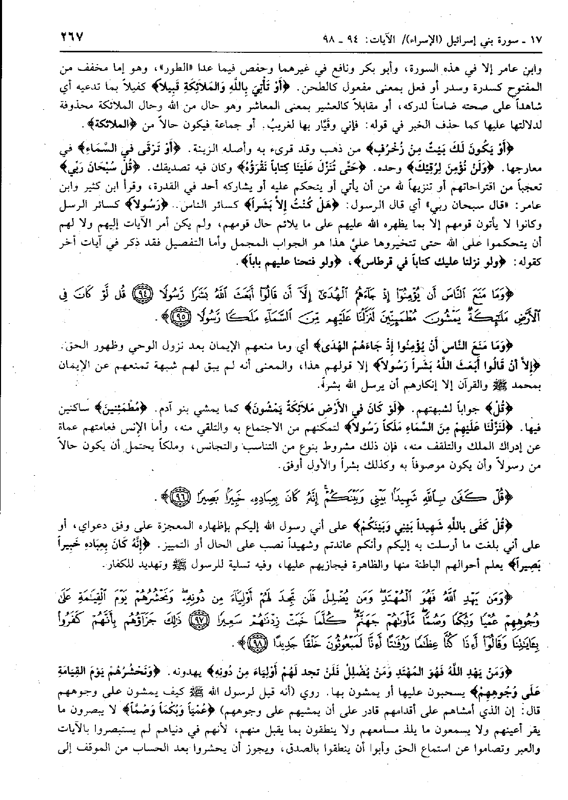 وَما مَنَعَ النَّاسَ أَنْ يُؤْمِنُوا إِذْ جاءَهُمُ الْهُدى إِلاَّ أَنْ قالُوا أَبَعَثَ اللَّهُ بَشَراً رَسُولاً (94) قُلْ لَوْ كانَ فِي الْأَرْضِ مَلائِكَةٌ يَمْشُونَ مُطْمَئِنِّينَ لَنَزَّلْنا عَلَيْهِمْ مِنَ السَّماءِ مَلَكاً رَسُولاً (95)