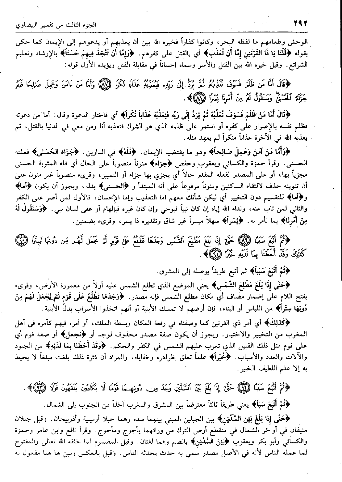 ثُمَّ أَتْبَعَ سَبَباً (89) حَتَّى إِذا بَلَغَ مَطْلِعَ الشَّمْسِ وَجَدَها تَطْلُعُ عَلى قَوْمٍ لَمْ نَجْعَلْ لَهُمْ مِنْ دُونِها سِتْراً (90) كَذلِكَ وَقَدْ أَحَطْنا بِما لَدَيْهِ خُبْراً (91)