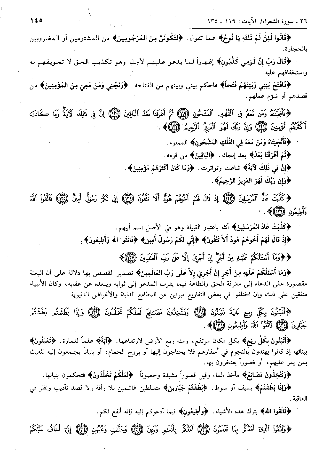 وَما أَسْئَلُكُمْ عَلَيْهِ مِنْ أَجْرٍ إِنْ أَجْرِيَ إِلَّا عَلى رَبِّ الْعالَمِينَ تصدير القصص بها دلالة على أن البعثة مقصورة على الدعاء إلى معرفة الحق والطاعة فيما يقرب المدعو إلى ثوابه ويبعده عن عقابه، وكان الأنبياء متفقين على ذلك وإن اختلفوا في بعض التفاريع مبرئين عن المطامع الدنيئة والأغراض الدنيوية.