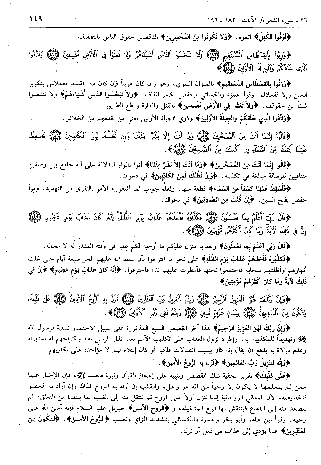 وَزِنُوا بِالْقِسْطاسِ الْمُسْتَقِيمِ (182) وَلا تَبْخَسُوا النَّاسَ أَشْياءَهُمْ وَلا تَعْثَوْا فِي الْأَرْضِ مُفْسِدِينَ (183) وَاتَّقُوا الَّذِي خَلَقَكُمْ وَالْجِبِلَّةَ الْأَوَّلِينَ (184)