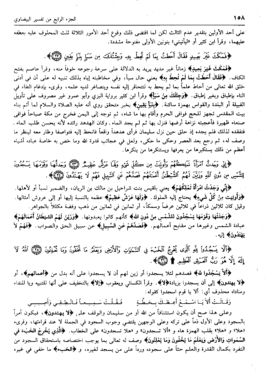 أَلاَّ يَسْجُدُوا لِلَّهِ الَّذِي يُخْرِجُ الْخَبْءَ فِي السَّماواتِ وَالْأَرْضِ وَيَعْلَمُ مَا تُخْفُونَ وَما تُعْلِنُونَ (25) اللَّهُ لاَ إِلهَ إِلاَّ هُوَ رَبُّ الْعَرْشِ الْعَظِيمِ (26)