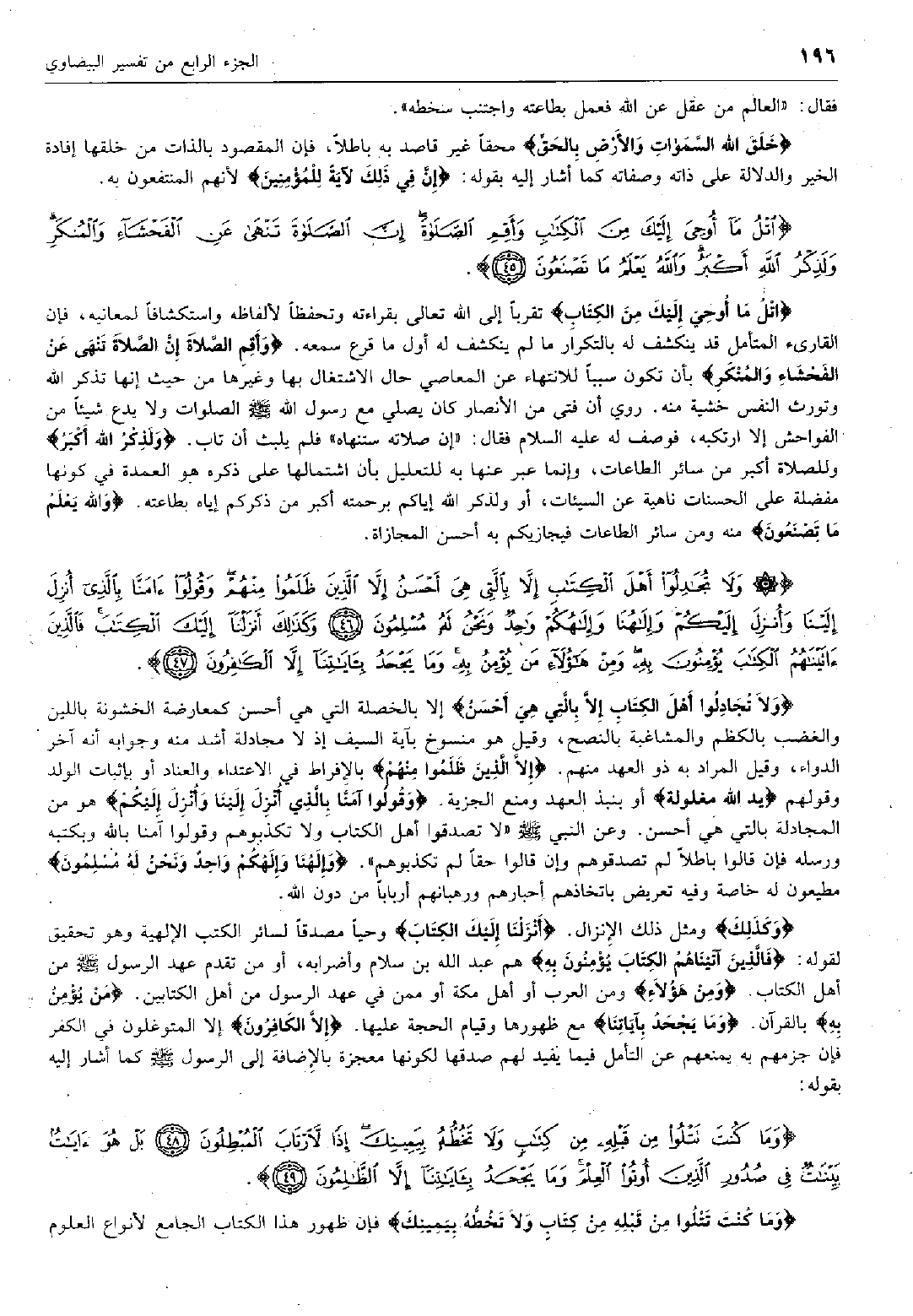 وَلا تُجادِلُوا أَهْلَ الْكِتابِ إِلاَّ بِالَّتِي هِيَ أَحْسَنُ إِلاَّ الَّذِينَ ظَلَمُوا مِنْهُمْ وَقُولُوا آمَنَّا بِالَّذِي أُنْزِلَ إِلَيْنا وَأُنْزِلَ إِلَيْكُمْ وَإِلهُنا وَإِلهُكُمْ واحِدٌ وَنَحْنُ لَهُ مُسْلِمُونَ (46) وَكَذلِكَ أَنْزَلْنا إِلَيْكَ الْكِتابَ فَالَّذِينَ آتَيْناهُمُ الْكِتابَ يُؤْمِنُونَ بِهِ وَمِنْ هؤُلاءِ مَنْ يُؤْمِنُ بِهِ وَما يَجْحَدُ بِآياتِنا إِلاَّ الْكافِرُونَ (47)