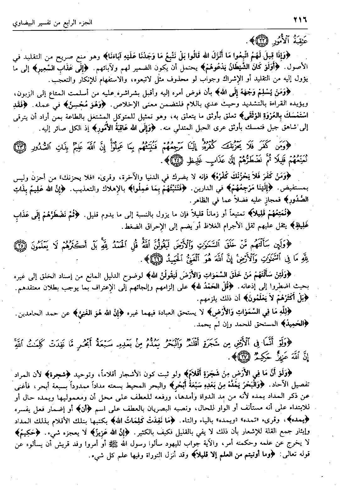 وَلَئِنْ سَأَلْتَهُمْ مَنْ خَلَقَ السَّماواتِ وَالْأَرْضَ لَيَقُولُنَّ اللَّهُ قُلِ الْحَمْدُ لِلَّهِ بَلْ أَكْثَرُهُمْ لاَ يَعْلَمُونَ (25) لِلَّهِ ما فِي السَّماواتِ وَالْأَرْضِ إِنَّ اللَّهَ هُوَ الْغَنِيُّ الْحَمِيدُ (26)