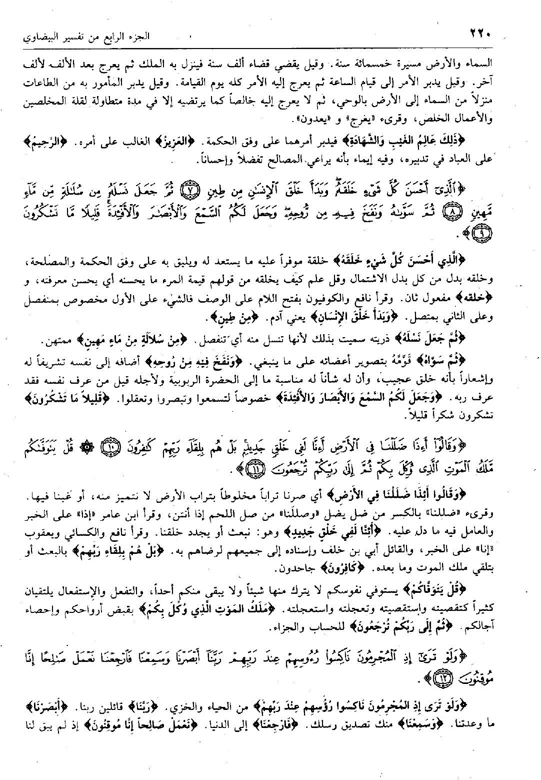 الَّذِي أَحْسَنَ كُلَّ شَيْءٍ خَلَقَهُ وَبَدَأَ خَلْقَ الْإِنْسانِ مِنْ طِينٍ (7) ثُمَّ جَعَلَ نَسْلَهُ مِنْ سُلالَةٍ مِنْ ماءٍ مَهِينٍ (8) ثُمَّ سَوَّاهُ وَنَفَخَ فِيهِ مِنْ رُوحِهِ وَجَعَلَ لَكُمُ السَّمْعَ وَالْأَبْصارَ وَالْأَفْئِدَةَ قَلِيلاً ما تَشْكُرُونَ (9)