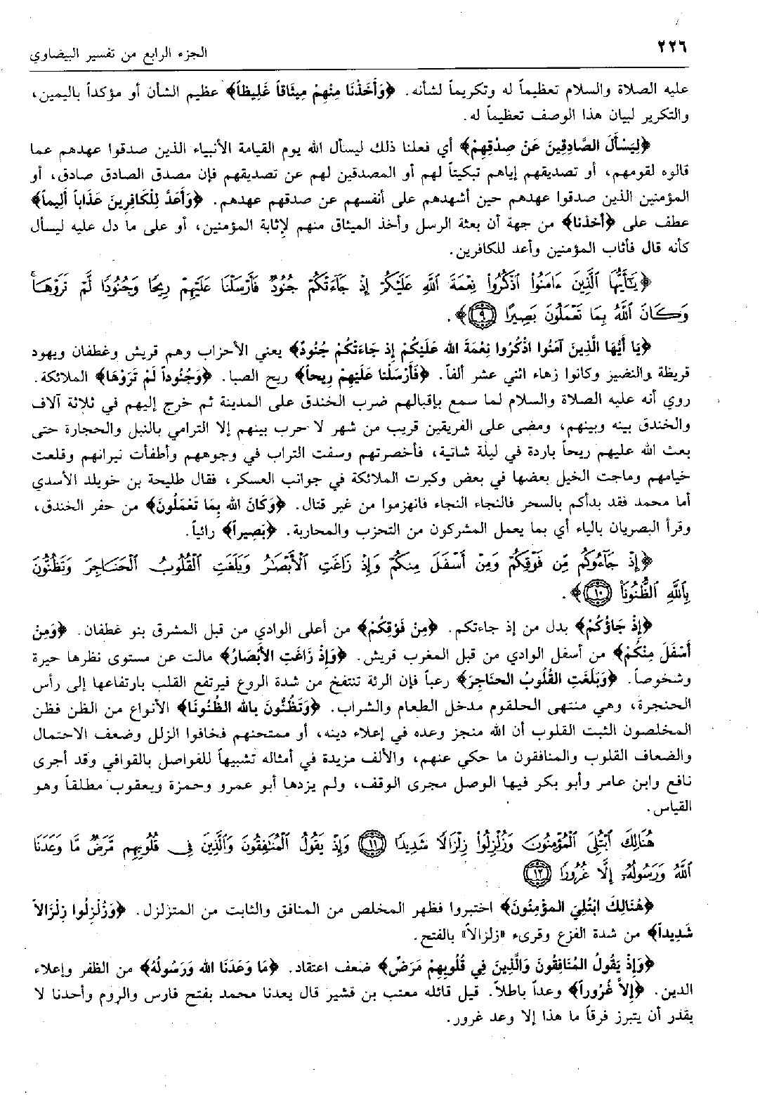 يا أَيُّهَا الَّذِينَ آمَنُوا اذْكُرُوا نِعْمَةَ اللَّهِ عَلَيْكُمْ إِذْ جاءَتْكُمْ جُنُودٌ فَأَرْسَلْنا عَلَيْهِمْ رِيحاً وَجُنُوداً لَمْ تَرَوْها وَكانَ اللَّهُ بِما تَعْمَلُونَ بَصِيراً (9)