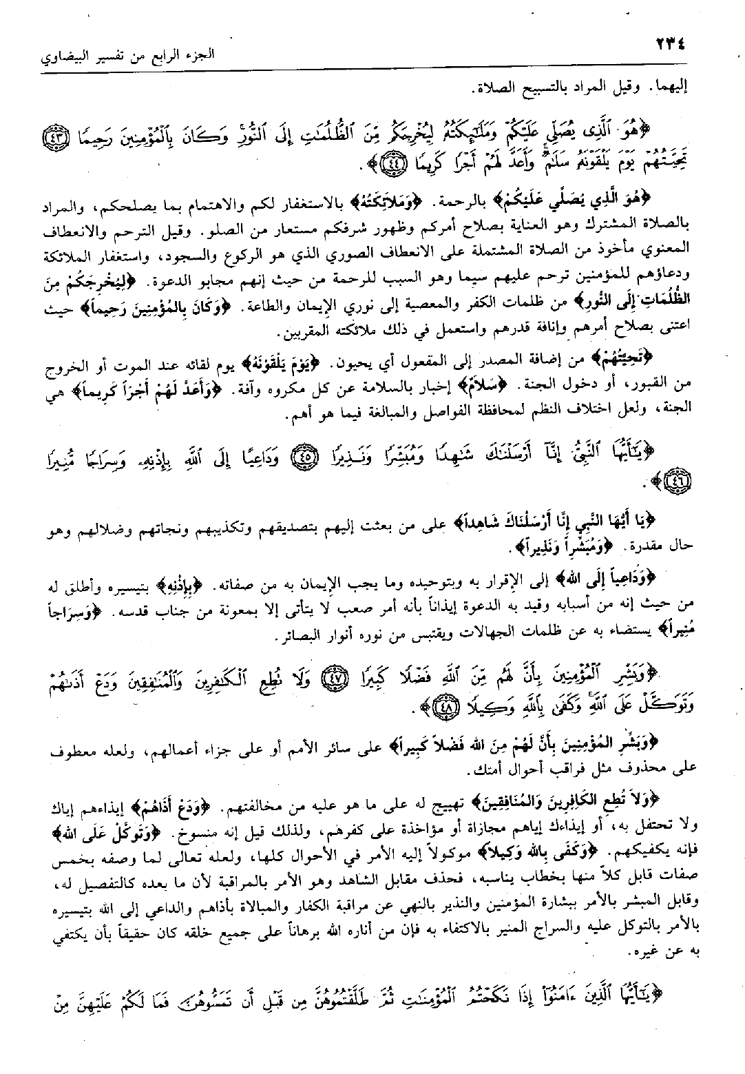 يا أَيُّهَا النَّبِيُّ إِنَّا أَرْسَلْناكَ شاهِداً وَمُبَشِّراً وَنَذِيراً (45) وَداعِياً إِلَى اللَّهِ بِإِذْنِهِ وَسِراجاً مُنِيراً (46)