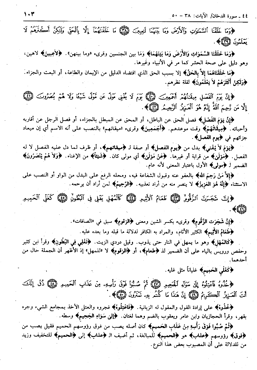 وَما خَلَقْنَا السَّماواتِ وَالْأَرْضَ وَما بَيْنَهُما لاعِبِينَ (38) مَا خَلَقْناهُما إِلاَّ بِالْحَقِّ وَلكِنَّ أَكْثَرَهُمْ لاَ يَعْلَمُونَ (39)