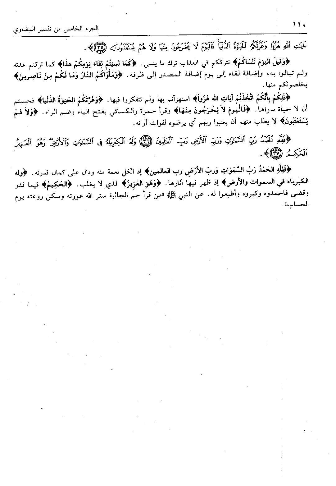 فَلِلَّهِ الْحَمْدُ رَبِّ السَّماواتِ وَرَبِّ الْأَرْضِ رَبِّ الْعالَمِينَ (36) وَلَهُ الْكِبْرِياءُ فِي السَّماواتِ وَالْأَرْضِ وَهُوَ الْعَزِيزُ الْحَكِيمُ (37)