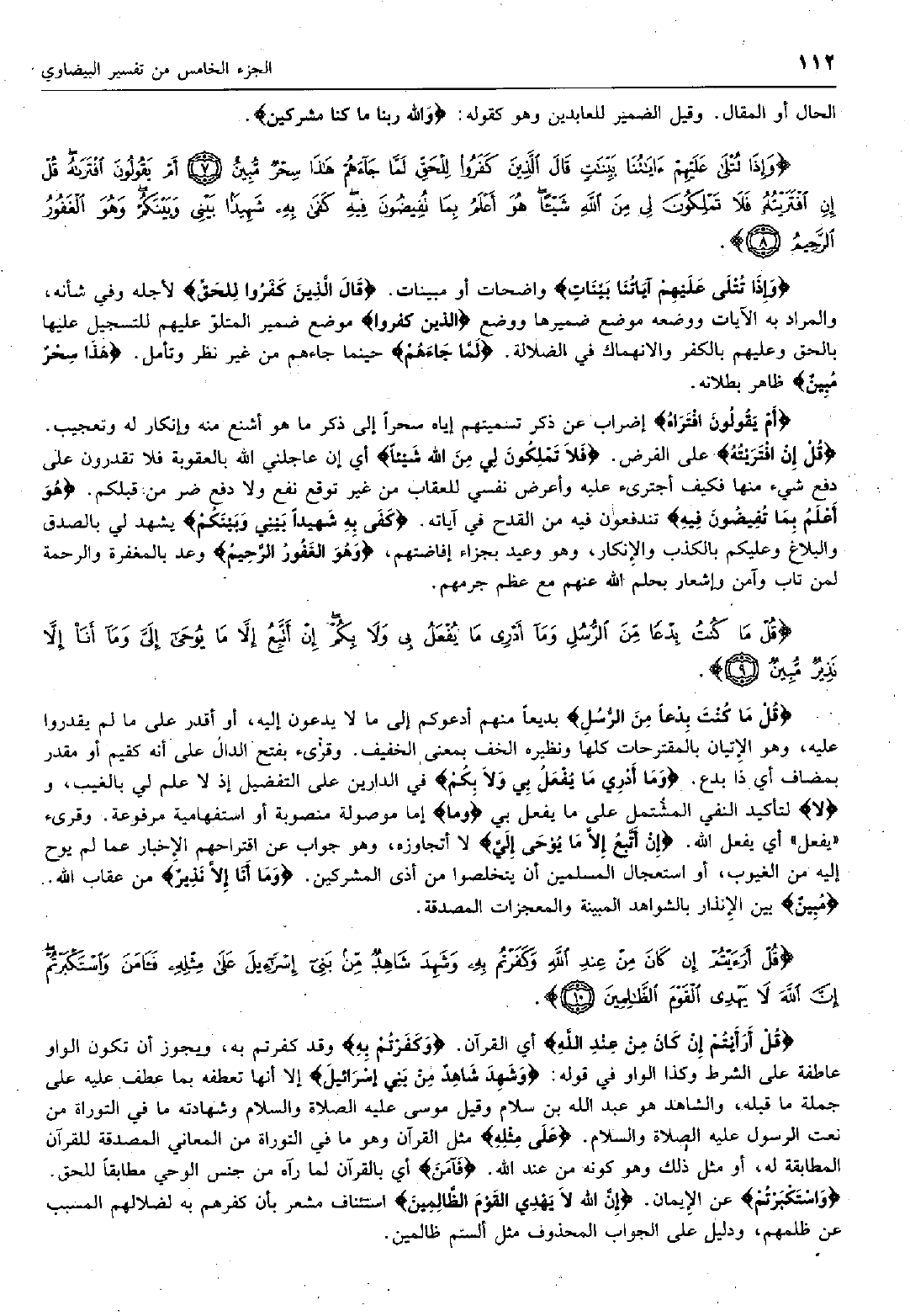وَإِذا تُتْلى عَلَيْهِمْ آياتُنا بَيِّناتٍ قالَ الَّذِينَ كَفَرُوا لِلْحَقِّ لَمَّا جاءَهُمْ هذا سِحْرٌ مُبِينٌ (7) أَمْ يَقُولُونَ افْتَراهُ قُلْ إِنِ افْتَرَيْتُهُ فَلا تَمْلِكُونَ لِي مِنَ اللَّهِ شَيْئاً هُوَ أَعْلَمُ بِما تُفِيضُونَ فِيهِ كَفى بِهِ شَهِيداً بَيْنِي وَبَيْنَكُمْ وَهُوَ الْغَفُورُ الرَّحِيمُ (8)